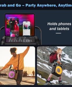 4. Altavoz Portátil Definitivo: Nuestro altavoz portátil con dos micrófonos cuenta con un asa y una correa para el hombro para que sea fácil llevarlo contigo. Lleva tu música contigo y convierte cualquier evento en una divertida fiesta de karaoke. Ya sea que vayas a la playa, visitar amigos o asistir a una reunión familiar, la conveniencia y versatilidad de nuestra máquina de karaoke la hacen el compañero de viaje perfecto para cualquier amante de la música.