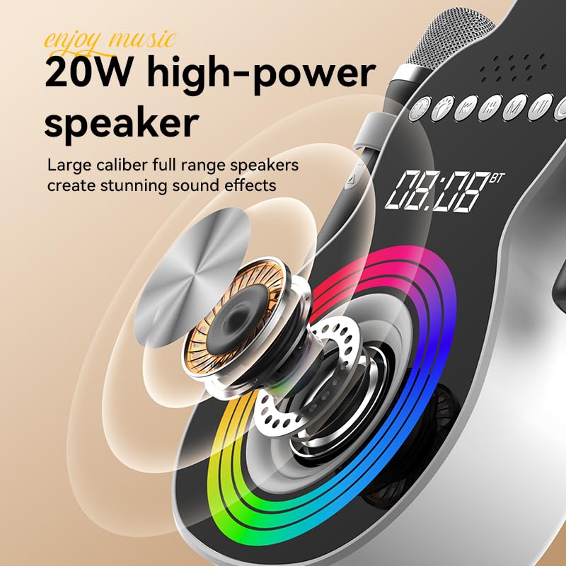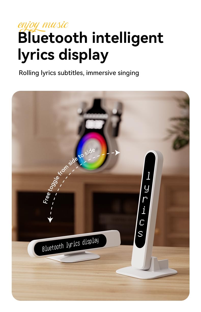 3. Letras de Canciones Automáticas – Sincroniza letras con tu karaoke principal a través de Bluetooth + Teleprompter incorporado garantiza que no te pierdas ni una palabra.
