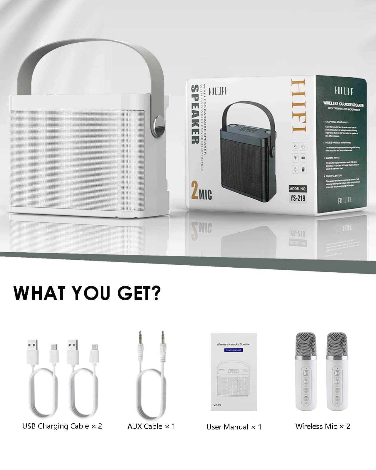 1. SET DE MÁQUINA DE KARAOKE PORTÁTIL: Eleva tu experiencia de canto con nuestro altavoz de karaoke Bluetooth, diseñado para una portabilidad sin esfuerzo. Sus dimensiones compactas de 8.3″ x 6.1″ y su construcción ligera lo hacen ideal para aquellos que valoran un espacio vital sin desorden. Ya sea organizando una fiesta en el patio trasero o cantando a las maravillas de la naturaleza, la máquina de karaoke FULLIFE YS219 es tu compañero perfecto. Con su cómoda asa de transporte, puedes llevarlo a cualquier lugar, sin ruedas, y hacer que la música te siga. 2. EXCELENTE SISTEMA DE ALTAVOCES DE KARAOKE TODO EN UNO: La máquina de karaoke FULLIFE 2024 con 2 micrófonos tiene un altavoz integrado de 15W, diseñado para un sonido de alto rendimiento optimizado y una reproducción de sonido estéreo de rango completo. Distorsión 0.5 %, logra un sonido de rango completo surround y te da un efecto audiovisual impactante. La función de «corte de voz» debilita la voz del cantante original, permitiéndote brillar como vocalista principal. (Nota: El «corte de voz» solo es compatible con música estéreo, como la música de karaoke). 3. MÁQUINA DE KARAOKE MULTIFUNCIÓN: Incorpora el último chip Bluetooth 5.0 para transmisión inalámbrica que garantiza un emparejamiento instantáneo y proporciona una transmisión más estable y a una mayor distancia de hasta 49 pies. Este sistema de PA Bluetooth portátil también soporta una tarjeta Micro TF, Flash USB, y conectividad Aux-in. Compatible con teléfonos móviles Android, TV, iPad, tableta y PC, no se necesitan cables. Ideal para iglesias, fiestas pequeñas, escuelas, aulas, gimnasios, reuniones corporativas y presentaciones. 4. BATERÍA DE LARGA DURACIÓN: Este altavoz de karaoke para adultos incorpora una batería de iones de litio de alta eficiencia de 3000mAh, que garantiza un tiempo de reproducción de música ininterrumpido de hasta 5 a 8 horas, y un micrófono con batería de iones de litio de alta eficiencia de 1500mAh. Ya sea en un baile interior o una reunión al aire libre, ¡puedes disfrutar de tus canciones favoritas sin los cables restrictivos! 5. PROMESA DE FULLIFE: En Fullife, ofrecemos a cada cliente SERVICIO DE REEMPLAZO DE 365 DÍAS SIN MOTIVO en todas nuestras máquinas de karaoke. Si tienes algún problema, no dudes en contactarnos antes de devolver el producto. Nuestro equipo de servicio al cliente profesional siempre está listo para ayudarte a resolver cualquier problema.