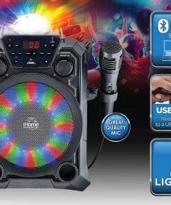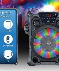 La máquina de karaoke Bluetooth iHome es el complemento perfecto para cualquier fiesta. Conéctate a tu dispositivo a través de Bluetooth y transmite toda tu música favorita. Las luces de colores LED integradas definitivamente harán que tu fiesta cobre vida.