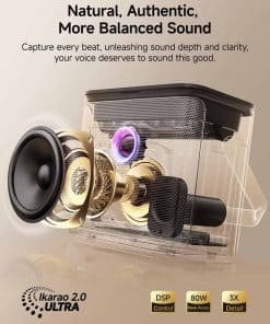 4. SONIDO MÁS EQUILIBRADO Y NATURAL: El altavoz de karaoke potente de 80W libera por completo un sonido profundo y claro, llenando cualquier habitación con música potente. La tecnología avanzada de separación de graves y agudos mantiene el sonido equilibrado, reduce el ruido y elimina el eco en cualquier volumen o frecuencia, haciendo que cada golpe sea tan claro y poderoso como una presentación en vivo. Sirve tanto como altavoz Bluetooth y sistema de PA durante el día, y se convierte en una máquina de karaoke por la noche, perfecto para cantar y divertirse con tu familia.