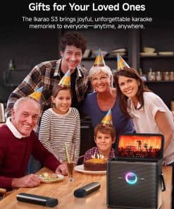La máquina de karaoke Ikarao S3 es la mejor elección para el karaoke, ya que utiliza la eliminación vocal para convertir cualquier canción en una pista de acompañamiento con un solo toque. Con asa integrada y batería recargable, es fácil de llevar de interiores a exteriores para divertirse con el karaoke en cualquier momento. La calidad de sonido de 80W es impresionante para una máquina de karaoke tan compacta. Con tecnología avanzada de supresión de ruido y aullidos, el S3 ofrece vocales de calidad de estudio y 7 efectos de sonido integrados para agregar diversión a tus fiestas. La máquina de karaoke Shell S3 viene con 6 meses de KaraFun prime, que ofrece acceso a una amplia biblioteca de más de 50,000 canciones con letras que cambian de color, personalización de clave y tempo, y control remoto. Perfecto para eventos familiares, fiestas, viajes, práctica vocal y presentaciones en vivo, el S3 proporciona un sonido equilibrado y natural con una separación clara de graves y agudos, eliminando el eco y el ruido para una experiencia de canto excepcional. El altavoz de karaoke también funciona como un altavoz Bluetooth y sistema de PA, lo que lo convierte en un dispositivo versátil para uso durante el día y la noche. Este regalo perfecto para cualquier edad es fácil de usar y garantiza momentos inolvidables de canto y diversión con tus seres queridos
