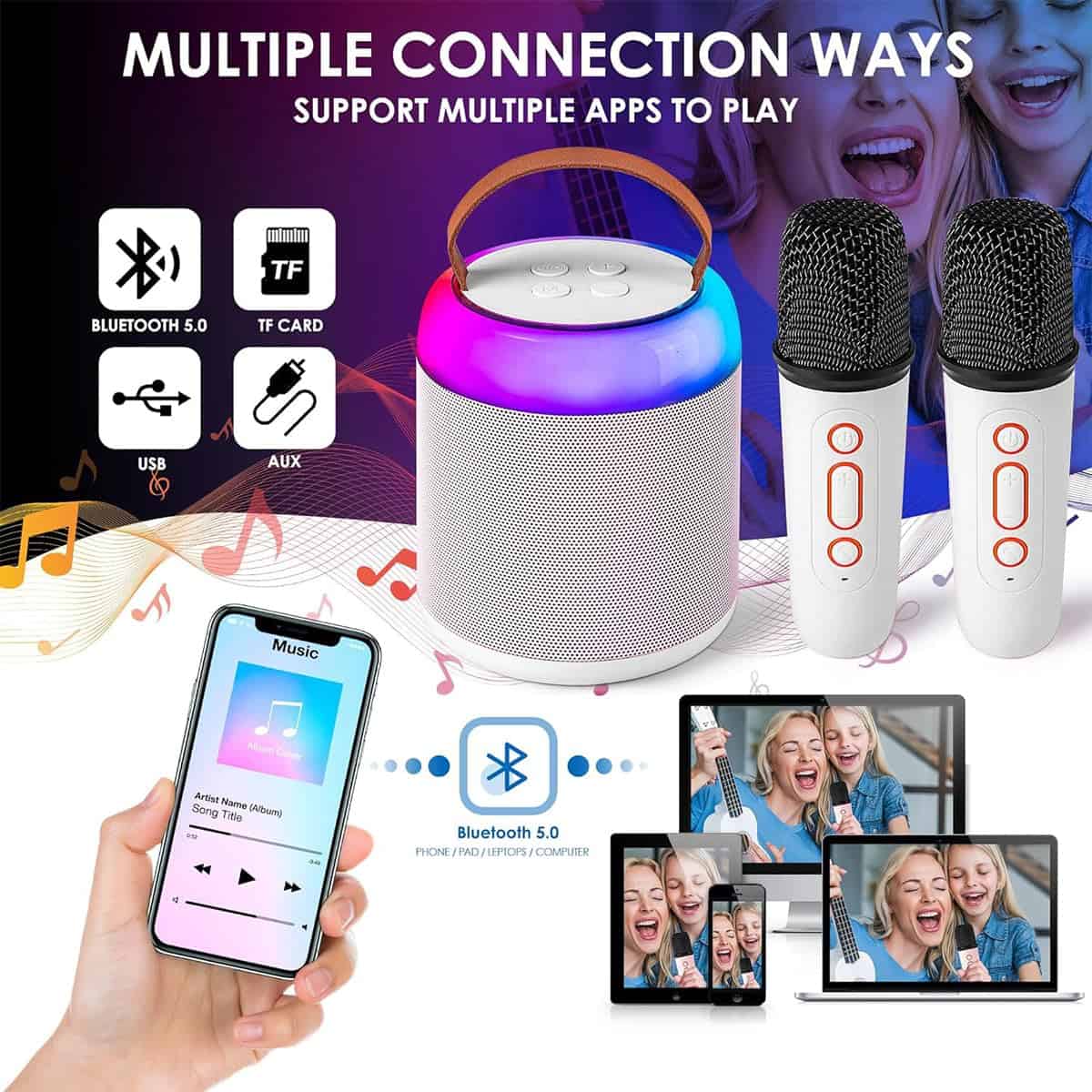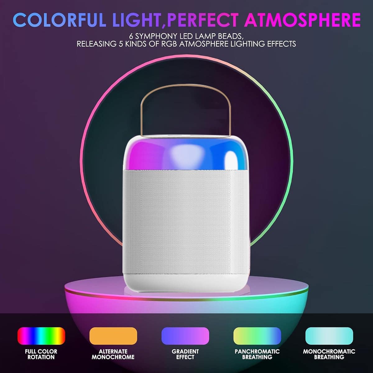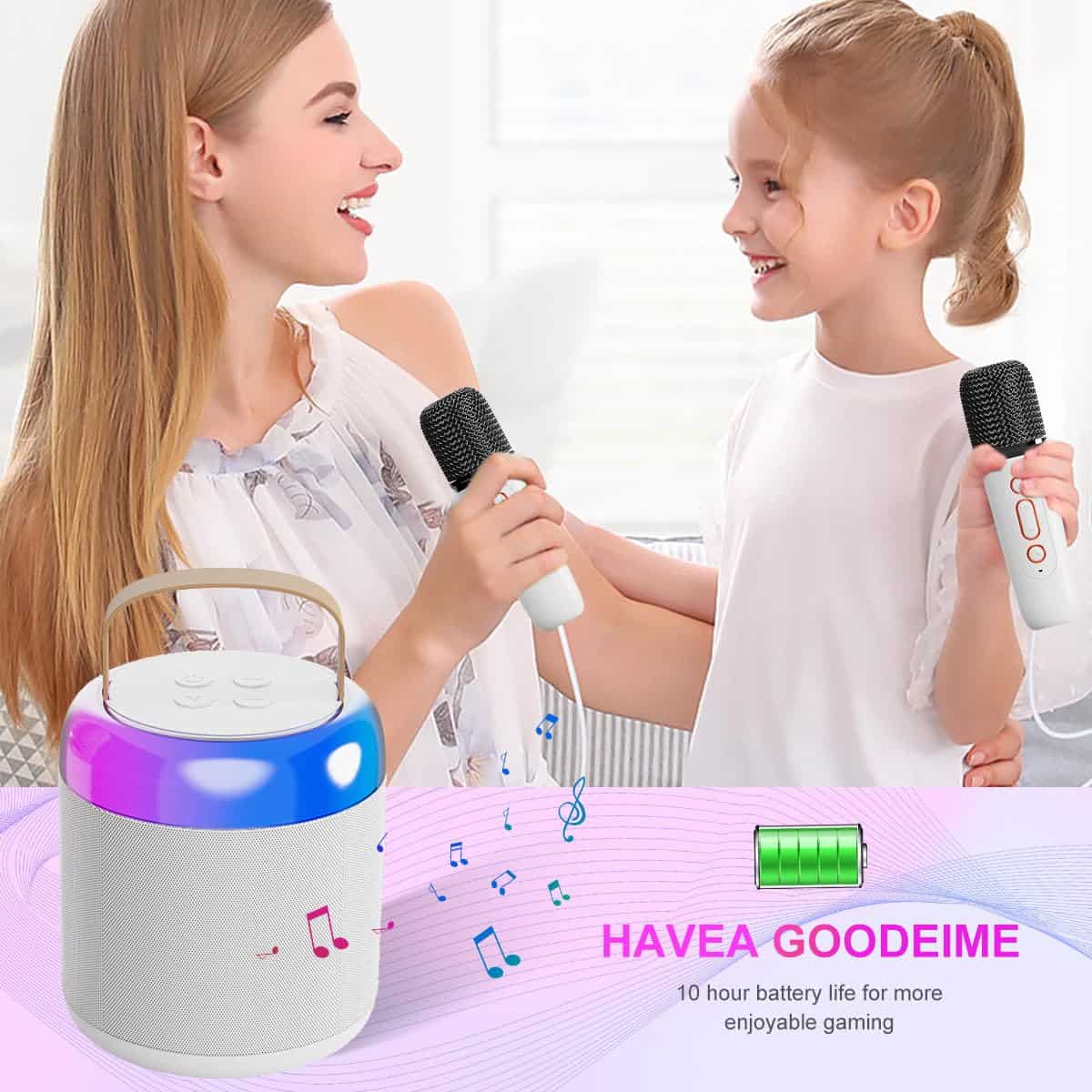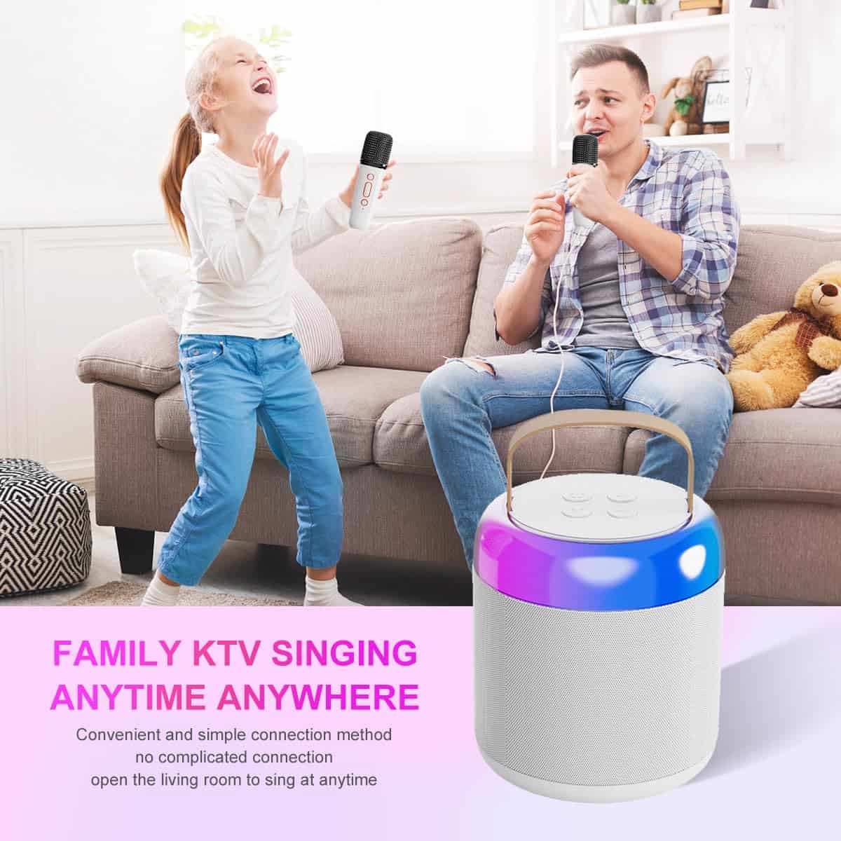 Altavoz Bluetooth Portátil Mini Karaoke, Dos micrófonos inalámbricos ofrecen el doble de diversión en la experiencia, perfecto para agregar emoción y energía a cualquier fiesta o reunión, Máquina de karaoke con efecto de iluminación LED, excelente calidad de sonido y larga espera de reproducción, Bluetooth 5.0