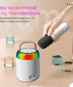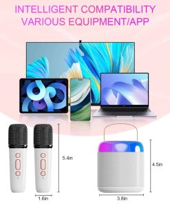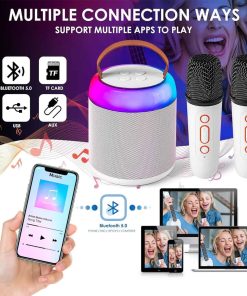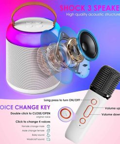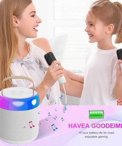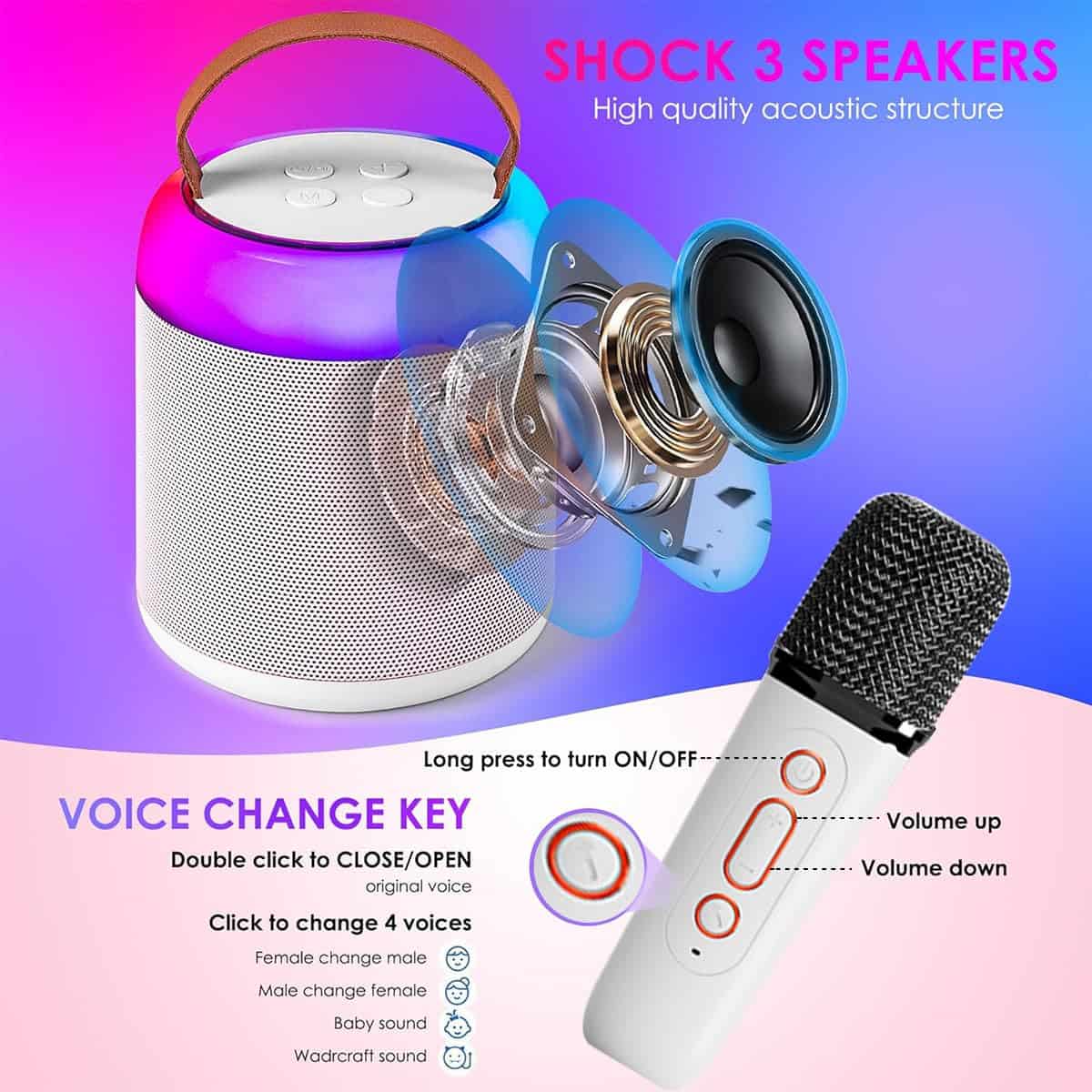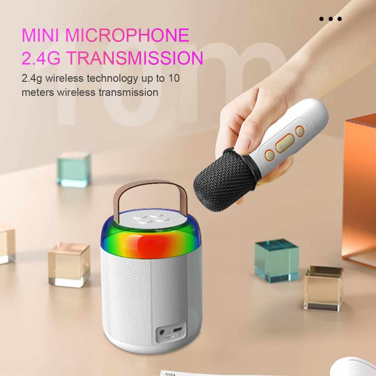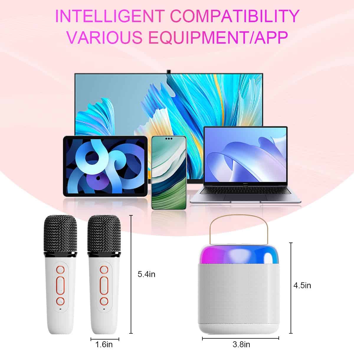 Altavoz Bluetooth Portátil Mini Karaoke, Dos micrófonos inalámbricos ofrecen el doble de diversión en la experiencia, perfecto para agregar emoción y energía a cualquier fiesta o reunión, Máquina de karaoke con efecto de iluminación LED, excelente calidad de sonido y larga espera de reproducción, Bluetooth 5.0
