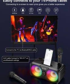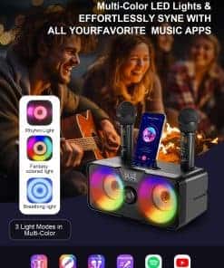 Karaoke Machine for Adults Kids with 2 UHF Wireless Microphones,Portable Bluetooth Singing PA Speaker System with LED Lights for Home Party,Outdoor/Indoor/Wedding,Church,Birthday Gifts
