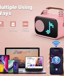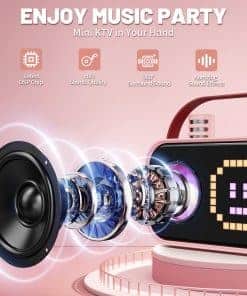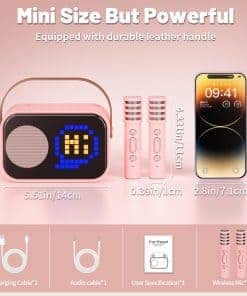 Siente la magia de la música con la máquina de karaoke perfecta para niños y adultos. Con micrófonos inalámbricos duales, este sistema de karaoke todo en uno es ideal para llevar la diversión a cualquier lugar, ya sea en un picnic, de vacaciones o en fiestas en casa. El diseño compacto con ranuras de micrófono integradas y una correa reforzada lo convierte en el compañero de viaje perfecto para que los niños se conviertan en superestrellas instantáneas.
