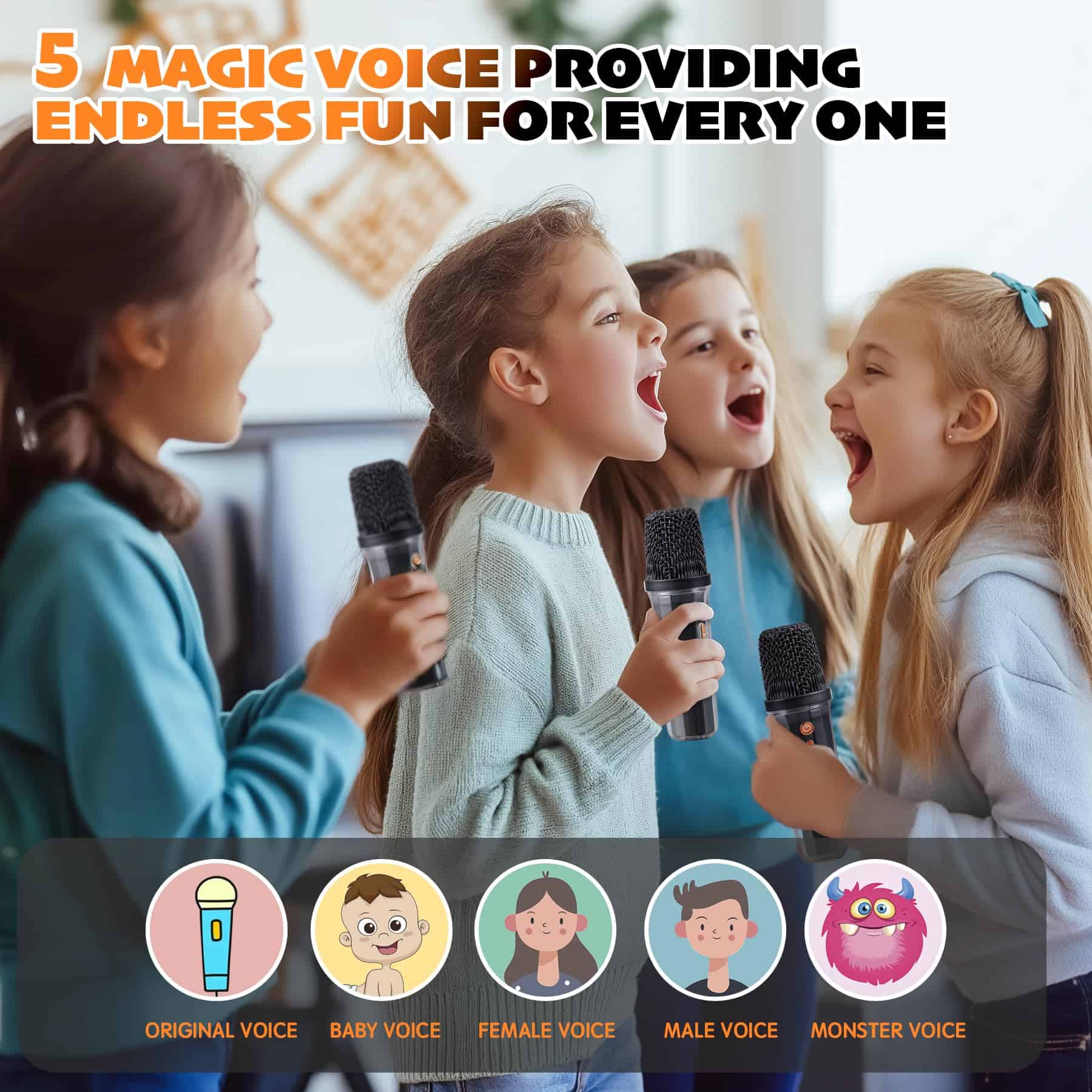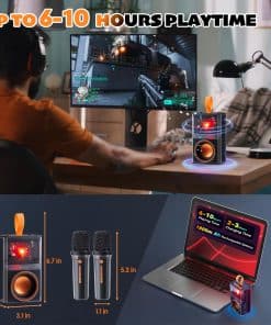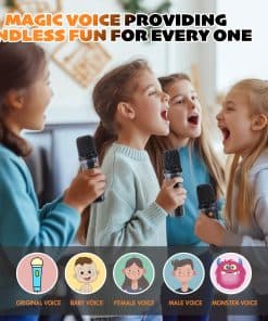 1. SONIDO ESTÉREO EXCELENTE: El altavoz bluetooth portátil mini de Quntelon cuenta con altavoces profesionales de alta calidad de afinación para una calidad de sonido más clara y efectos de graves más fuertes. 2. REPRODUCCIÓN DE 6-10 HORAS: La máquina de karaoke tiene una batería de ión de litio recargable de alta capacidad de rendimiento incorporada, y el tiempo de reproducción es de hasta 6-10 horas. Puedes llevarlo fácilmente al aire libre para usarlo, adecuado para reuniones familiares y actividades al aire libre. 3. AMPLIA COMPATIBILIDAD: El sistema de karaoke tiene el último chip de transmisión inalámbrica Bluetooth 5.3 integrado, garantizando un emparejamiento instantáneo, una transmisión más estable y una mayor distancia. Al mismo tiempo, es compatible con la conexión de entrada de tarjeta TF, USB y AUX, compatible con teléfonos móviles Android, TV, ipad, tabletas, PC. 4. 2 MICRÓFONOS INALÁMBRICOS: La mini máquina de karaoke está equipada con 2 micrófonos que se emparejan automáticamente al encenderse, con reducción de ruido dual para un canto más claro. Puedes cantar rap en cualquier momento y lugar, convirtiéndote instantáneamente en un KTV. 5. 5 CAMBIOS DE VOZ MÁGICOS: La máquina de karaoke para niños incluye 5 efectos de sonido mágicos: de chica, de chico, de bebé, de monstruo y acústico para añadir energía a la fiesta. La máquina de karaoke también viene con iluminación genial, para que puedas crear un ambiente agradable y romántico de karaoke y fiesta. 6. MEJOR REGALO: El altavoz de fiesta de Quntelon es el regalo ideal para fiestas, es el regalo ideal para cumpleaños, fiestas, reuniones, para niños, niñas de 4,5,6,7,8,9,10,11,12 años en adelante, para todo tipo de festividades: Pascua, Navidad, Día de San Valentín, Halloween, Día de Acción de Gracias.