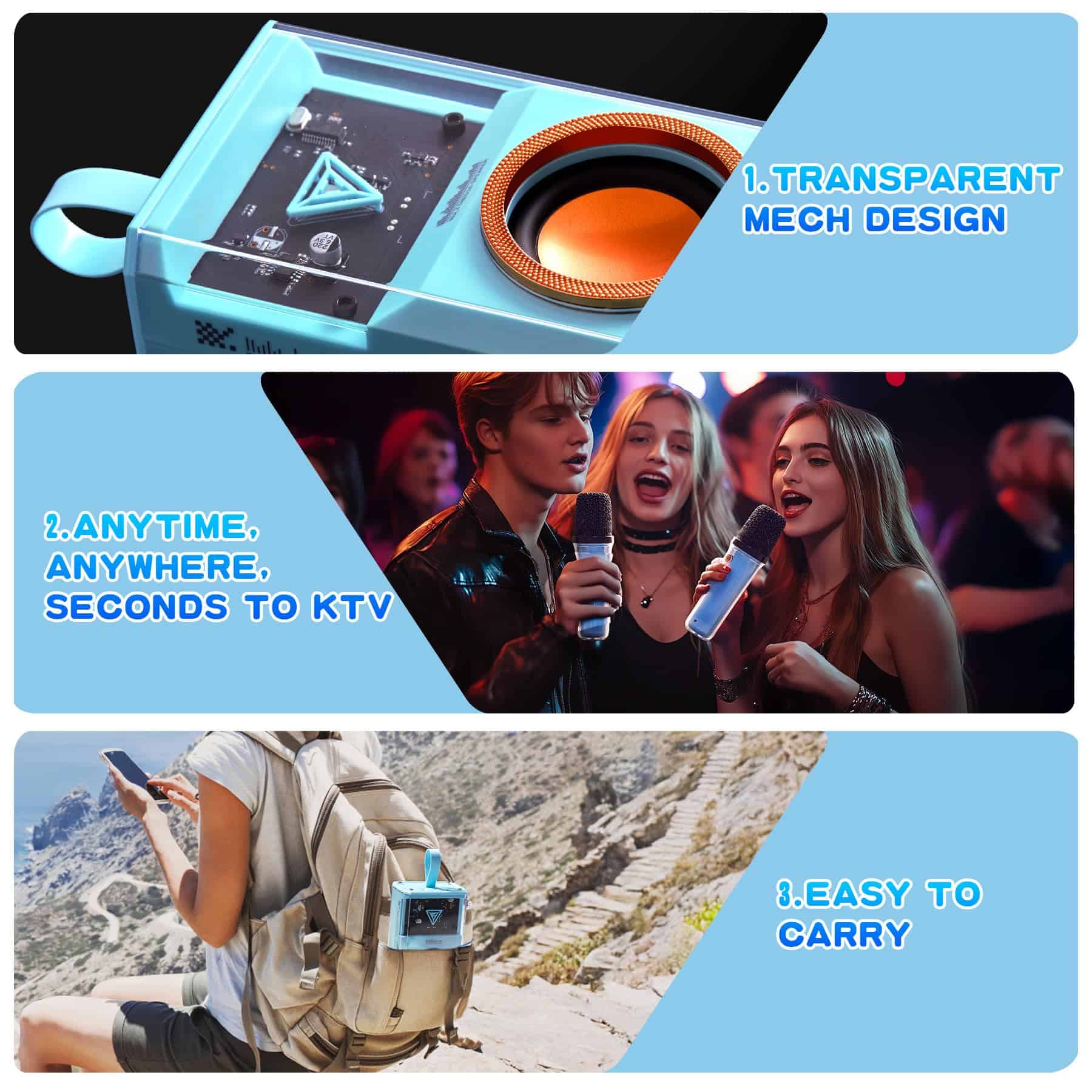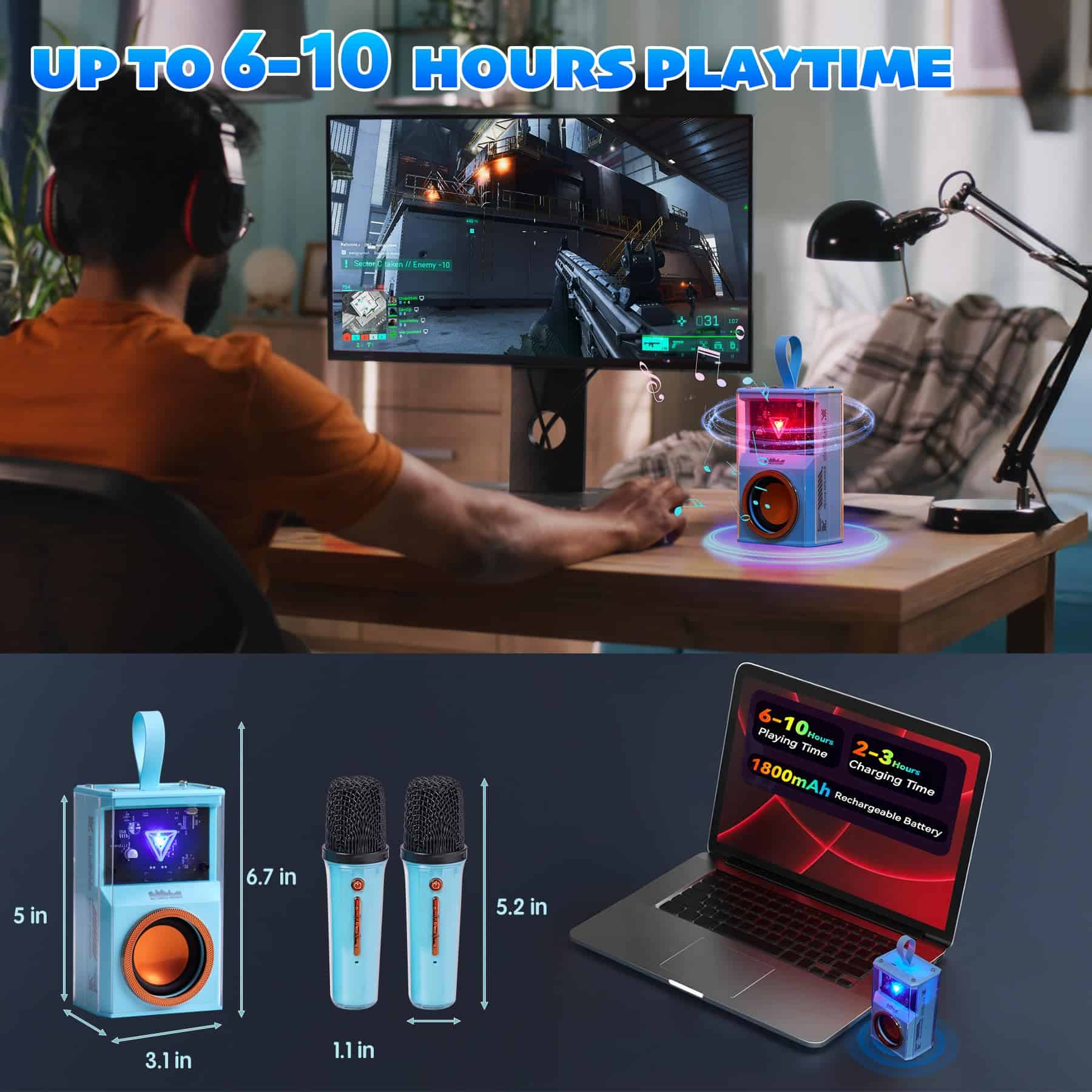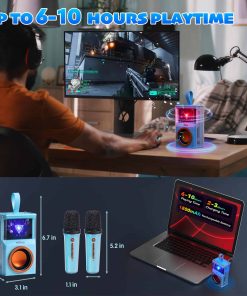 2. 6-10 HORAS DE REPRODUCCIÓN: La máquina de karaoke tiene una batería de iones de litio recargable de gran capacidad de alto rendimiento incorporada, y el tiempo de reproducción es de 6-10 horas. Puedes llevarlo fácilmente al exterior para usarlo, adecuado para reuniones familiares y actividades al aire libre.