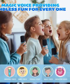 5. 5 CAMBIOS DE VOZ MÁGICOS: La máquina de karaoke infantil incluye 5 efectos de sonido mágicos: niña, niño, bebé, monstruo y acústico para agregar energía a la fiesta. La máquina de karaoke también viene con luces llamativas, para que puedas crear una agradable y romántica atmósfera de karaoke y fiesta.