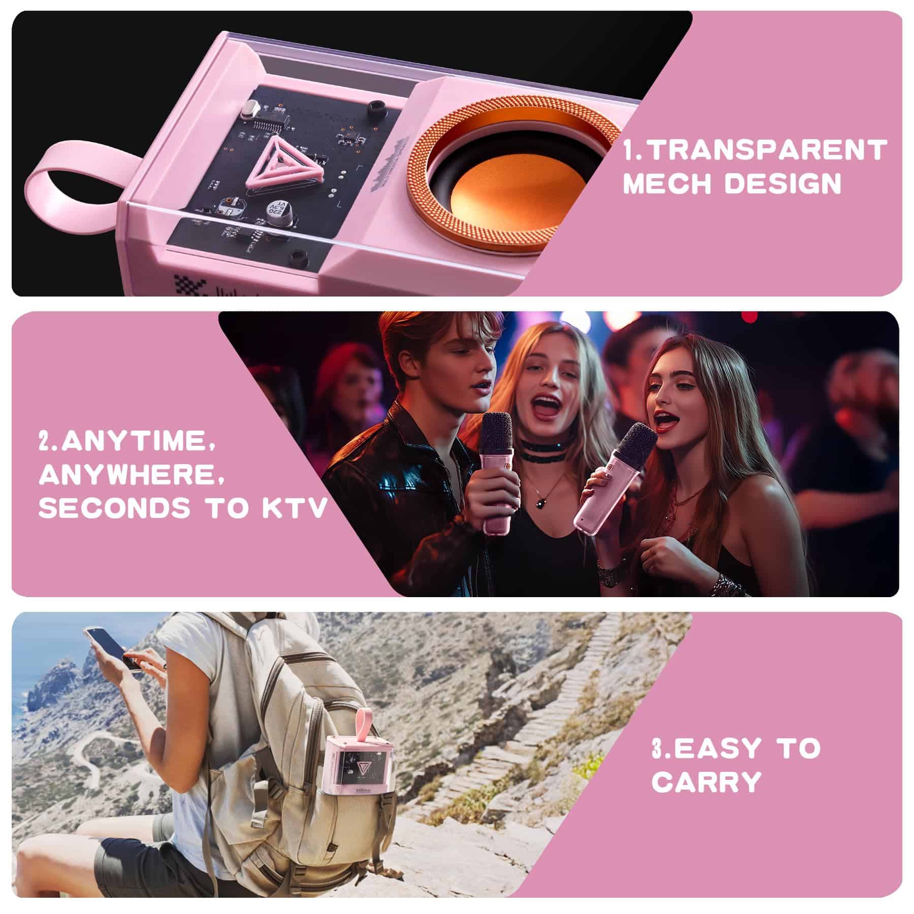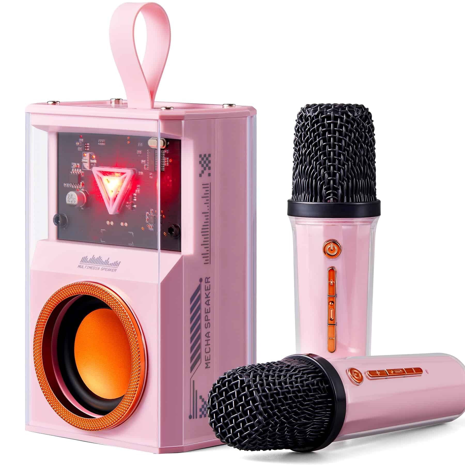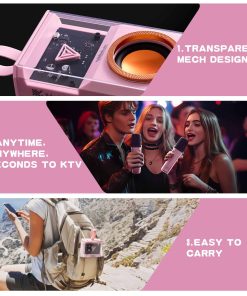 4. 2 MICRÓFONOS INALÁMBRICOS: La máquina de karaoke mini está equipada con 2 micrófonos que se emparejan automáticamente al encenderse, con doble reducción de ruido para un canto más claro. Puede cantar rap en cualquier momento y lugar, convirtiéndose instantáneamente en un KTV.