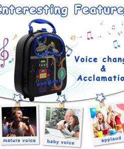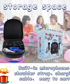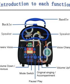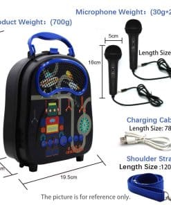 Linda máquina de karaoke infantil con diseño de dibujos animados. Adecuado para niños mayores de 3 años. Diseño único recargable y portátil, tamaño pequeño con correa de mochila, 3 modos de conexión BT. Enciende la máquina de karaoke con 2 micrófonos, abre el BT de tu teléfono móvil y busca ats-2020, fácil de conectar. USB y tarjeta micro SD: simplemente conecta y reproduce. Por cierto, cuando se usan USB y BT al mismo tiempo, hay que presionar la tecla M para cambiar de modo. Características interesantes Juguete de Música de Karaoke compatible con cambio de voz, aplausos, acompañamiento y cantantes acústicos, funciones de botón fáciles de usar, las reuniones infantiles serán más interesantes. Juguete de Karaoke Seguro: máquina de karaoke para niños sin bordes ni esquinas, todas las partes han pasado una estricta prueba de calidad y certificación de seguridad al 100%. Los niños juegan de forma más segura y los padres se sienten más tranquilos. ¡Haz clic en ‘Añadir al carrito’ ahora y experimenta la diferencia que hace la calidad real! Multi-función BT, Karaoke, USB, tarjeta TF, diámetro del altavoz de 52 mm 4 3W (modo / …), distancia de conexión BT de 25 metros. Potencia de salida RMS 3 W, 2 THD 10%, especificación BT: V4.2, respuesta de frecuencia 150-1800 HZ, potencia de salida RMS 6W THD 10%, batería de iones de litio recargable incorporada 5V/1200mA, relación señal/ruido 85 dB, distancia de conexión BT 10m con manos libres, entrada de carga DC-5V (0.4-1A). Lo que obtendrán los niños: Tu bendición y amor, 1 Altavoz de Karaoke, 2 Micrófonos de Karaoke, 1 Manual de Usuario, 1 Correa, 1 Cable de Carga USB