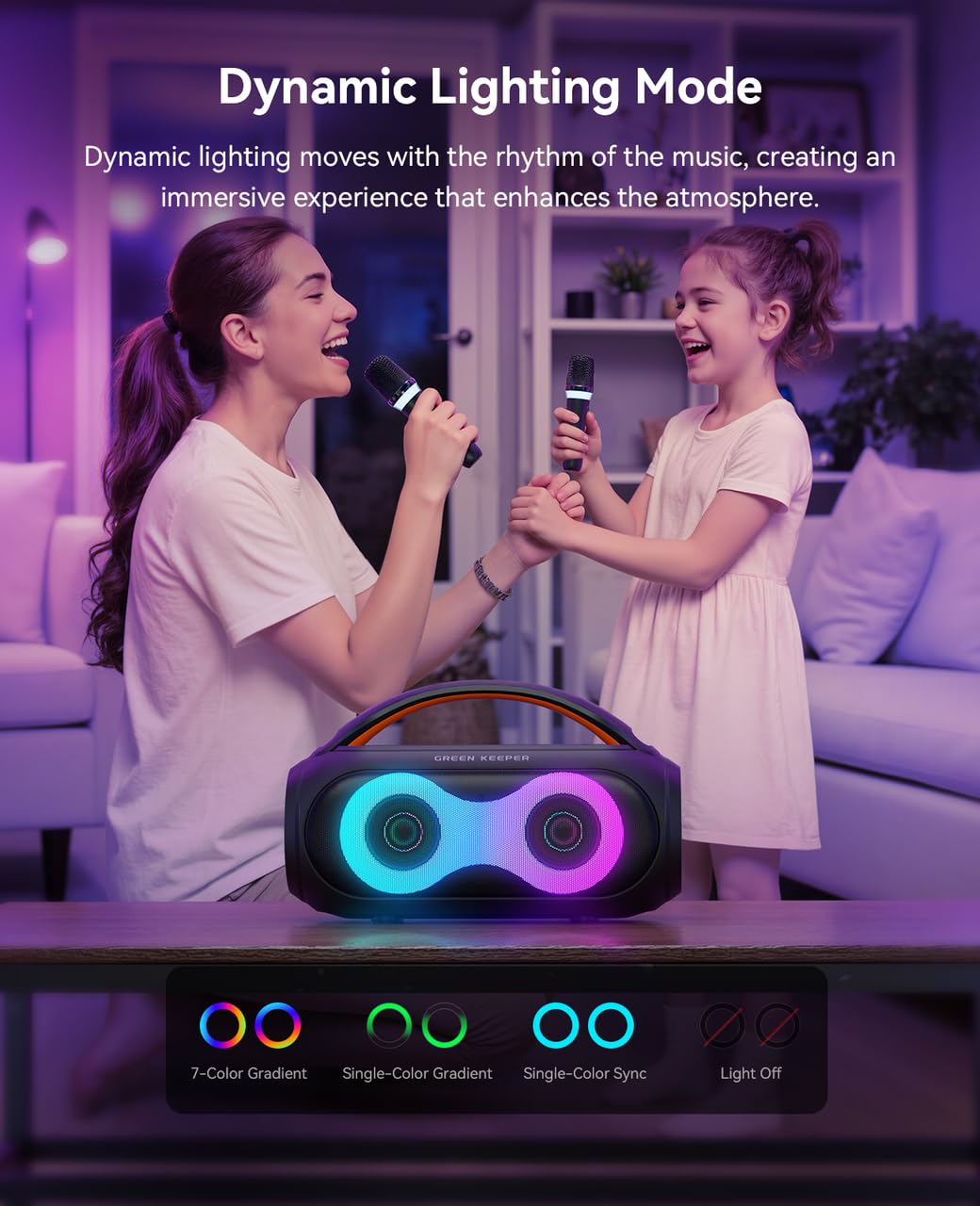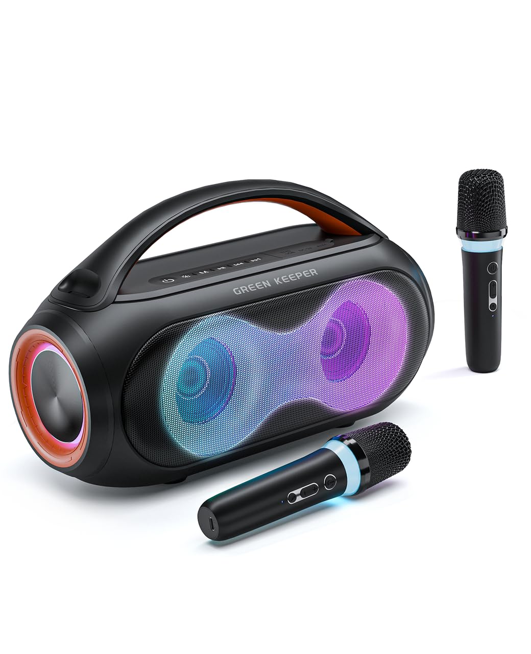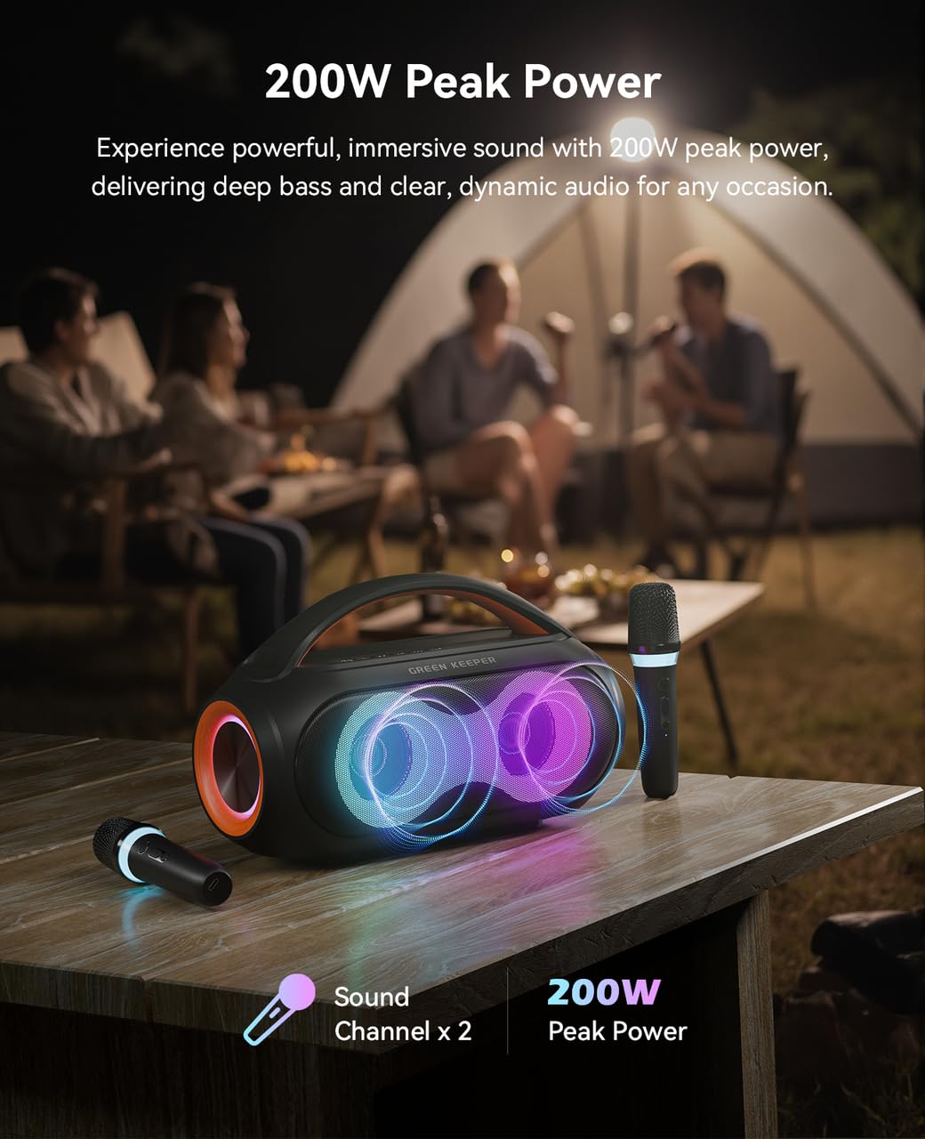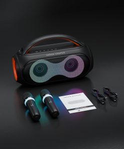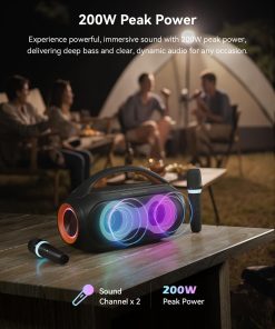 1. Potente Sonido: Equipado con un altavoz de 20W y 200W de potencia máxima, este sistema de karaoke ofrece vocales nítidas y audio dinámico, mejorado por un chip DSP avanzado para una experiencia verdaderamente inmersiva.