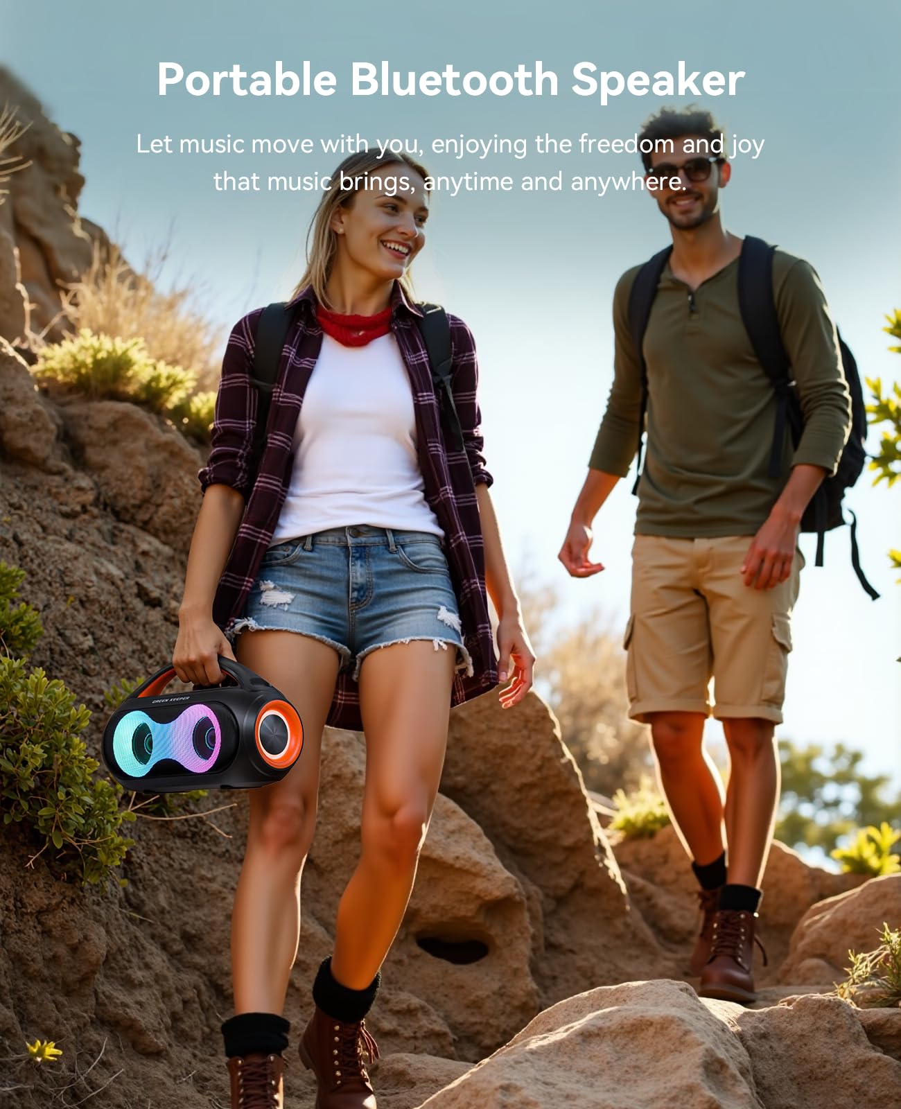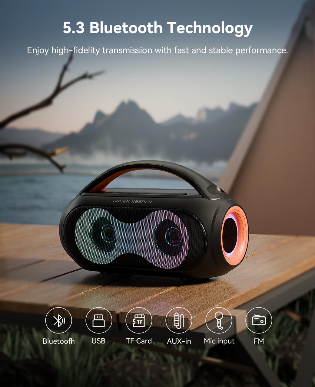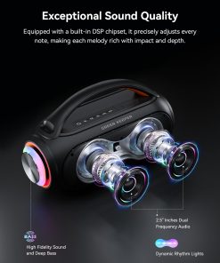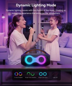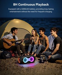 3. Luces de Fiesta y TWS: Convierte cualquier espacio en una animada fiesta con luces RGB coloridas que se sincronizan con el ritmo. Conecta dos altavoces a través del modo TWS para una experiencia de sonido estéreo aún más grande. ¡Perfecto para pequeñas reuniones, fiestas en casa y diversión al aire libre!