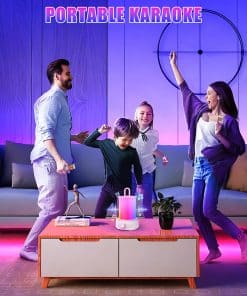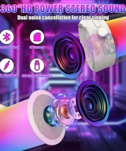 La Máquina de Karaoke Tixahi es un sistema de karaoke portátil que ofrece todas las características y beneficios que buscas en un diseño compacto y ligero. Canta con toda tu alma con los micrófonos Bluetooth inalámbricos incluidos, asegurando una experiencia de karaoke fácil y divertida. Equipado con tecnología Bluetooth 5.0, esta máquina de karaoke proporciona una señal confiable y sin cortes, permitiéndote conectar tus dispositivos fácilmente y disfrutar de tus canciones favoritas sin interrupciones. La tecnología avanzada de reducción de ruido mejora tus vocales y garantiza una calidad de sonido perfecta. No te preocupes por quedarte sin batería durante tus sesiones de karaoke. Esta máquina de karaoke cuenta con una larga duración de la batería de hasta 5-8 horas, lo que te permite cantar sin interrupciones todo lo que desees. Es perfecta para entretenimiento sobre la marcha y asegura horas de diversión continua. Esta máquina de karaoke inalámbrica utiliza el chipset más reciente y la tecnología de procesamiento de sonido para ofrecer un audio rico, claro con una claridad excepcional. Con modos de graves, normales y agudos incorporados, puedes personalizarlo con un solo toque para lograr tu sonido favorito. Viene con un woofer integrado de 4 pulgadas y dos tweeters que ofrecen un sonido más nítido, graves más potentes y un volumen moderado para una mejor experiencia de audio. El micrófono y altavoz es el regalo perfecto para niños, adultos, toda la familia y amigos. Es el regalo ideal para vacaciones y ocasiones especiales como Navidad, Pascua, San Valentín, Acción de Gracias, Halloween y Año Nuevo.