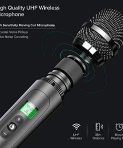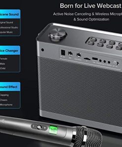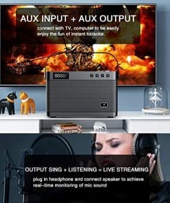 Eleva tu fiesta con este equipo de altavoces de Karaoke, que cuenta con dos asombrosos woofers de 3.5″ y dos tweeters de 1″ para una excelente música y vibraciones impresionantes. Con conectividad Bluetooth 5.0, puedes transmitir fácilmente música desde tu teléfono móvil o tableta, mientras que las entradas de tarjeta SD o unidad de medios USB te permiten reproducir tus propios archivos MP3. El altavoz también cuenta con un puerto AUX-in para conectarse a tu TV para KTV en casa, y un conector de transmisión en vivo para compartir tus canciones en aplicaciones como YouTube o TikTok. El sistema de altavoces PA portátil T9 está diseñado para la comodidad, con opciones de alimentación de CA y batería para uso en interiores y exteriores. El control remoto incluido te permite ajustar los ajustes desde lejos, lo que lo hace ideal para pequeñas fiestas y reuniones al aire libre. Además, los múltiples efectos vocales añaden diversión a la canción. El micrófono inalámbrico UHF incorpora una batería recargable que ofrece 5 horas de funcionamiento continuo. Simplemente toca los botones en el micrófono para configurar la frecuencia y emparejarlo con el altavoz, fácil de usar. Ambos micrófonos son de tipo Vocal Dinámico y característica Cardioid con excelente supresión de retroalimentación. Son robustos, resistentes a la humedad y pueden alcanzar una alta ganancia antes de la retroalimentación. Este set de altavoces Bluetooth portátiles incluye todo lo que necesitas para reproducir música genial en tu fiesta, incluyendo una máquina de altavoces, un micrófono inalámbrico UHF, un micrófono de mano con cable, un control remoto, un cargador de 15V-2A para el altavoz, un cargador de 5V-1A para el micrófono inalámbrico, un cable USB, un cable AUX, un cable para transmisión, y un manual.