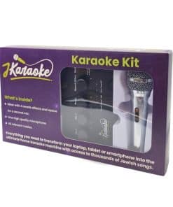 La Máquina de Karaoke jKaraoke transforma tu PC, laptop, tableta o teléfono inteligente en la máquina de karaoke casera definitiva, con acceso instantáneo a miles de canciones judías, desde los últimos éxitos hasta esos clásicos atemporales, ¡y todo lo que hay en medio! Obtén esa sensación verdadera de superestrella entonando tus canciones de karaoke favoritas con tu voz amplificada por el Kit de jKaraoke. ¡Nada supera esa sensación de armonía, puedes enchufar un segundo micrófono, agarrar a un amigo y unirte a la diversión!