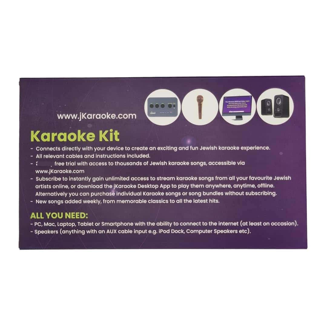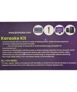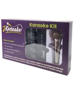 La Máquina de Karaoke de jKaraoke transforma tu PC, laptop, tableta o teléfono inteligente en la máquina de karaoke casera definitiva, con acceso instantáneo a miles de canciones judías, desde los últimos éxitos hasta los clásicos atemporales, ¡y todo lo demás! Obtén esa verdadera sensación de súper estrella cantando tus canciones de karaoke favoritas con tu voz amplificada por el Kit de jKaraoke. ¡Nada supera esa sensación de armonía, puedes enchufar un segundo micrófono, llamar a un amigo y unirte a la diversión!