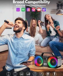 Potentes altavoces duales ofrecen un audio envolvente y graves profundos para una experiencia de karaoke cautivadora con la máquina de karaoke ZBQEJ. Con luces LED multicolores que se sincronizan con la música, este altavoz Bluetooth portátil crea un espectáculo visual cautivador que complementa la diversión auditiva. Además, la conectividad de micrófono inalámbrico te permite cantar dúos o pasarlo alrededor para una experiencia interactiva. Con la compatibilidad con teléfonos inteligentes a través de Bluetooth, puedes acceder a tu biblioteca de música y aplicaciones de karaoke favoritas para personalizar tu experiencia aún más. El diseño compacto y ligero con un asa incorporada hace que esta máquina de karaoke sea fácil de transportar, lo que te permite llevar la fiesta a donde quieras. Disfruta de la música y la diversión con la máquina de karaoke ZBQEJ.