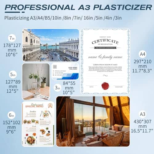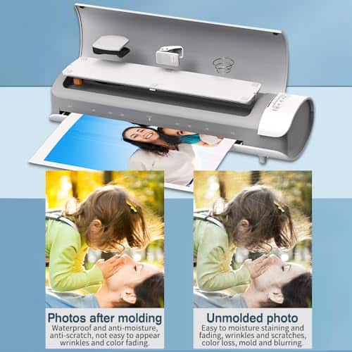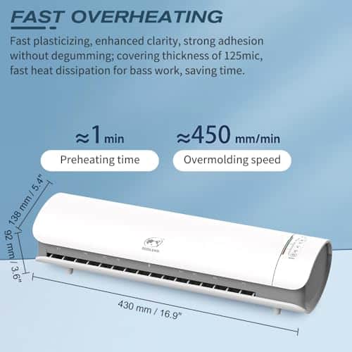 Nuestra Máquina de Laminado se calienta en solo 60 segundos, lo que le permite comenzar a laminar de inmediato. Con una velocidad de laminado de hasta 450 mm/min, un 60% más rápida que otras laminadoras, puede completar sus proyectos rápidamente y de manera eficiente. Diga adiós a largos tiempos de espera y aumente su productividad como nunca antes! La Máquina de Laminado asegura un laminado de alta calidad, protegiendo sus documentos o fotos de daños y preservándolos durante mucho tiempo. Con su tecnología avanzada, esta máquina proporciona resultados profesionales para todas sus necesidades de laminado, haciendo que su trabajo destaque y se vea pulido. Esta laminadora cuenta con una funcionalidad de modo dual para laminación en caliente y en frío. Ya sea que esté laminando materiales sensibles al calor o laminado térmico tradicional, esta versatilidad le permite elegir el método ideal para sus necesidades específicas. Tenga en cuenta que la laminadora en frío requiere el uso de bolsas autoadhesivas que no están incluidas. Nuestra laminadora viene con papel para laminar que se adapta a una variedad de tamaños de papel y fotos como 2R/3R/4R/5R/A3/A4/A5/A6. Es compatible con papeles laminados de 3 mil y 5 mil, incluyendo tamaño Legal, Carta, tarjeta de visita y tamaños de fotos. Para obtener los mejores resultados, asegúrese de elegir bolsas de 3-5 mil (80-100 micras) de grosor. Esta laminadora es fácil de operar y no requiere una configuración complicada. El panel de control intuitivo y la interfaz de usuario amigable hacen que la operación sea muy sencilla. Gracias al corto tiempo de calentamiento y a la rápida velocidad de laminado, puede obtener resultados profesionales con facilidad. Diga adiós a los atascos de papel, simplemente presione el botón ABS para eliminarlos y proteger sus documentos importantes.