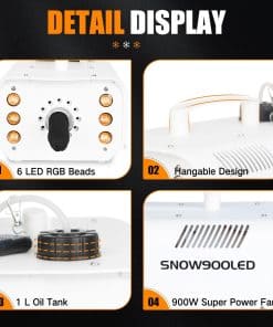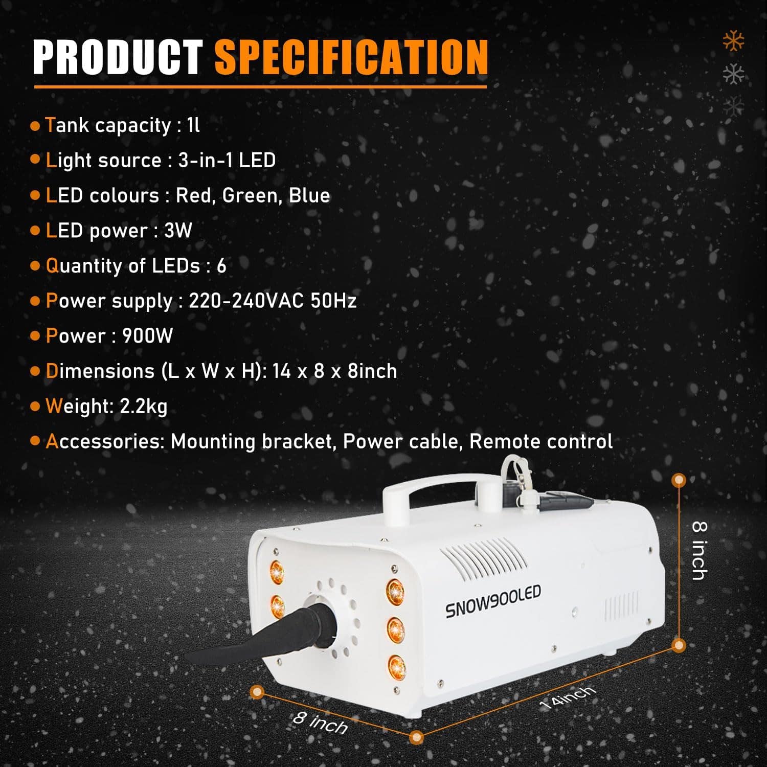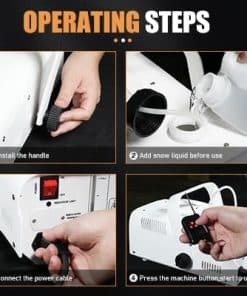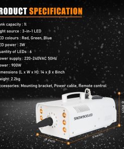Disfruta de momentos especiales con tus seres queridos con esta increíble máquina de nieve. Aprobada por ETL para tu tranquilidad, esta máquina produce cantidades de nieve segura y no tóxica. Simplemente agrega el líquido para nieve, enciende la máquina y controla la cantidad de nieve con el control remoto. Equipada con un temporizador automático de 15 minutos para mayor comodidad. Ofrecemos un excelente servicio al cliente. ¡Compra con confianza!