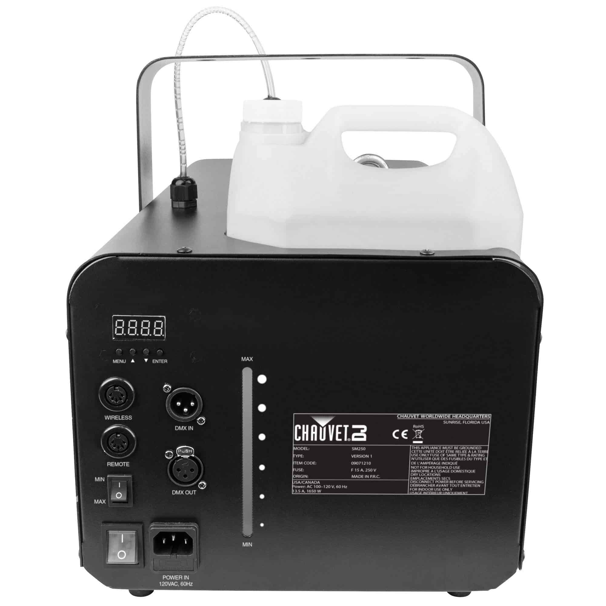 La Máquina de Nieve es una máquina de nieve de alto rendimiento con ajuste de volumen fácil de usar incluido a través del mando a distancia con cable incluido, DMX incorporado y pantalla digital. La Máquina de Nieve también cuenta con un conveniente interruptor de soplador Hi/Low para la cobertura de distancias cercanas y lejanas, y su fluido de nieve a base de agua no tóxico (se vende por separado) es seguro para todos los ambientes.