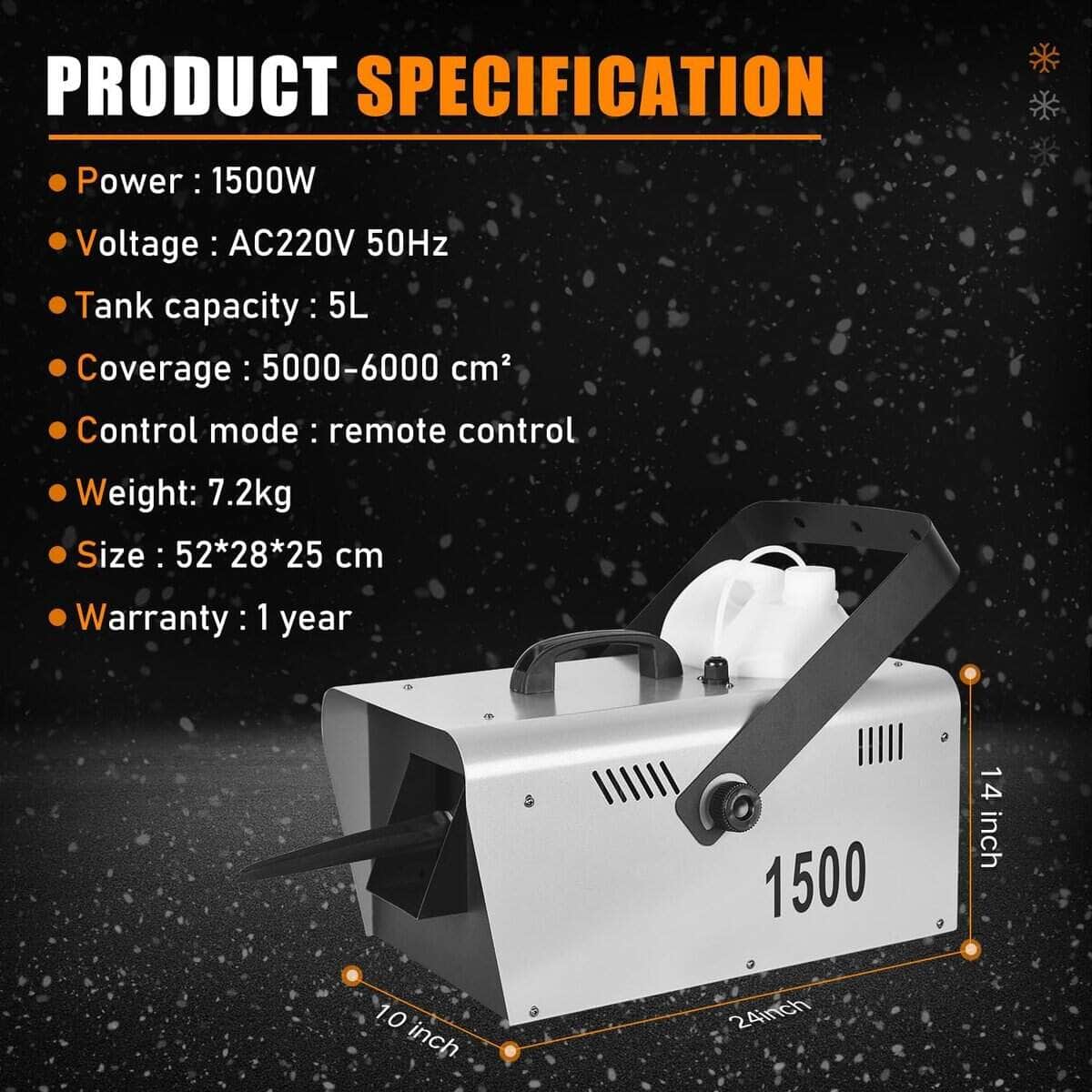 Máquina de Nieve de 1500W Control Remoto Equipo de Efectos