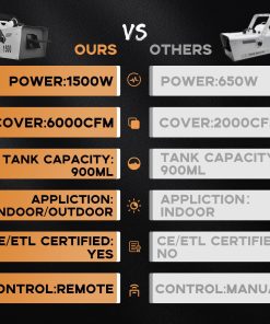 La máquina de nieve interior/exterior tiene un diseño ultraportátil y ligero que facilita su transporte y cubre una gran área. Es una máquina de nieve de gran potencia de 1500W, puede cubrir de 50 a 60 metros cuadrados. La máquina de fabricación de nieve tiene un asa con un ángulo ajustable y posición de agujero. Puedes fijarla directamente en la truss con el gancho de luz y ajustar el ángulo según sea necesario. La estructura interna científica y razonable y la integración del módulo de circuito de doble antinterferencia mejoran considerablemente la estabilidad de la antena.