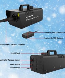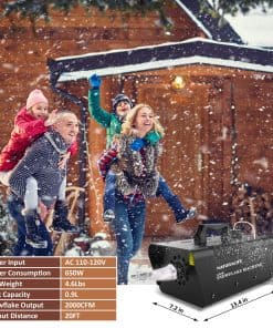1. Crea Ambiente Romántico en Cualquier Momento – Con 2000CFM de Alta Potencia, esta es una gran máquina de nieve que produce cantidades de la ilusión de nieve segura, no tóxica y abundante (recomendada para uso en interiores), compartiendo un tiempo agradable con tus seres queridos. 2. Seguridad / Certificado ETL – Probada, aprobada y certificada por ETL, fácilmente verificable en el sitio web. La seguridad de tu equipo, negocio, hogar y familia depende de la calidad de tus electrónicos. 3. Portátil y Fácil de Usar – Simplemente agrega líquido para nieve, enciende la máquina de nieve y controla con el sencillo control remoto cableado. También contiene un medidor visual de líquido. Los preparamos minuciosamente para tu placer de compra. 4. Control Remoto Cableado Equipado con control remoto cableado, es conveniente usar en diversas ocasiones. Con tiempo de ejecución automático de 15 minutos, ahorrándote la molestia de apagarlo. 5. Servicio al Cliente Confiable – Siempre hemos adherido a la filosofía de negocio de «cliente primero, calidad primero» para que puedas devolver tu producto y embalaje intactos dentro de los 90 días posteriores a la compra. Brindaremos orientación para cualquier pregunta que puedas tener.