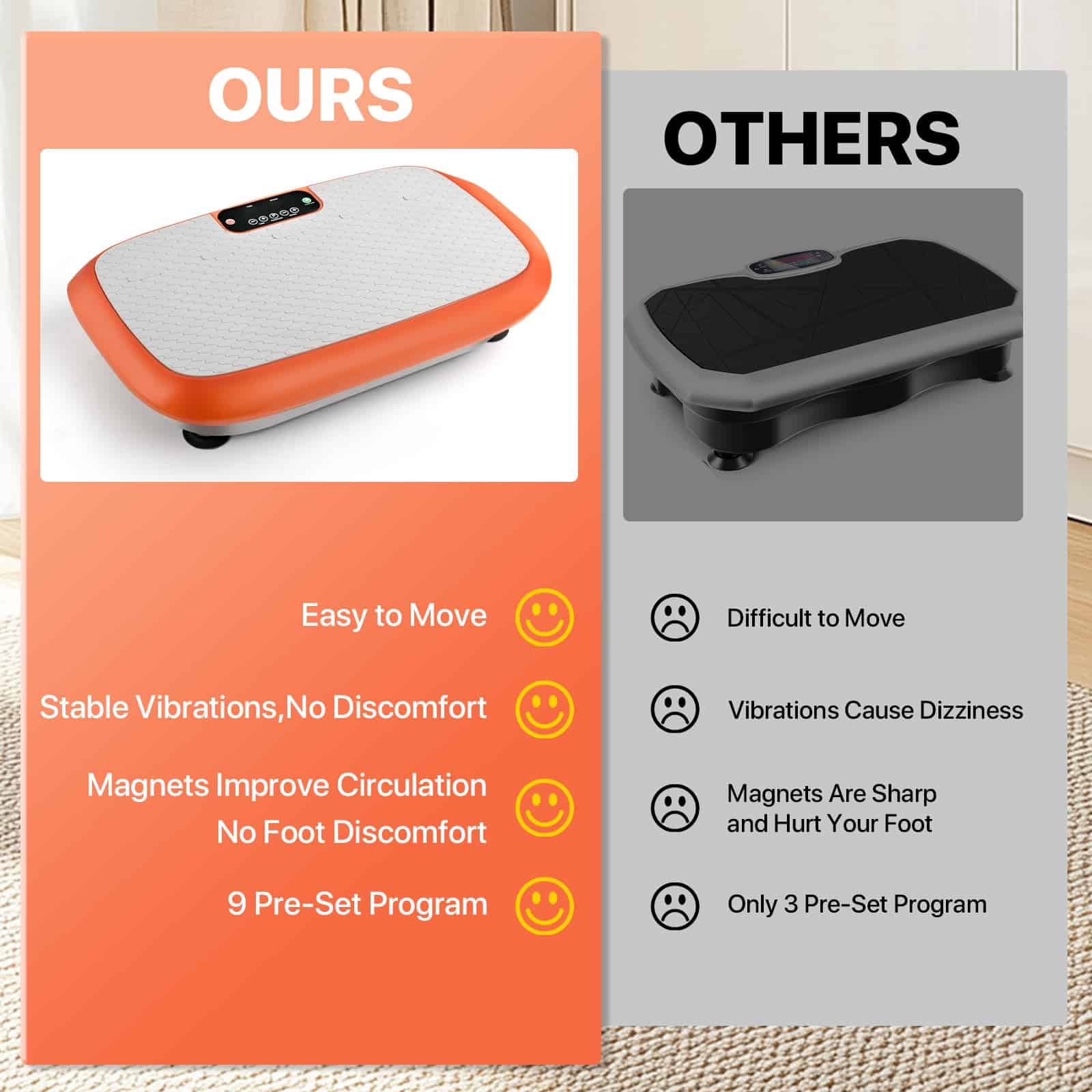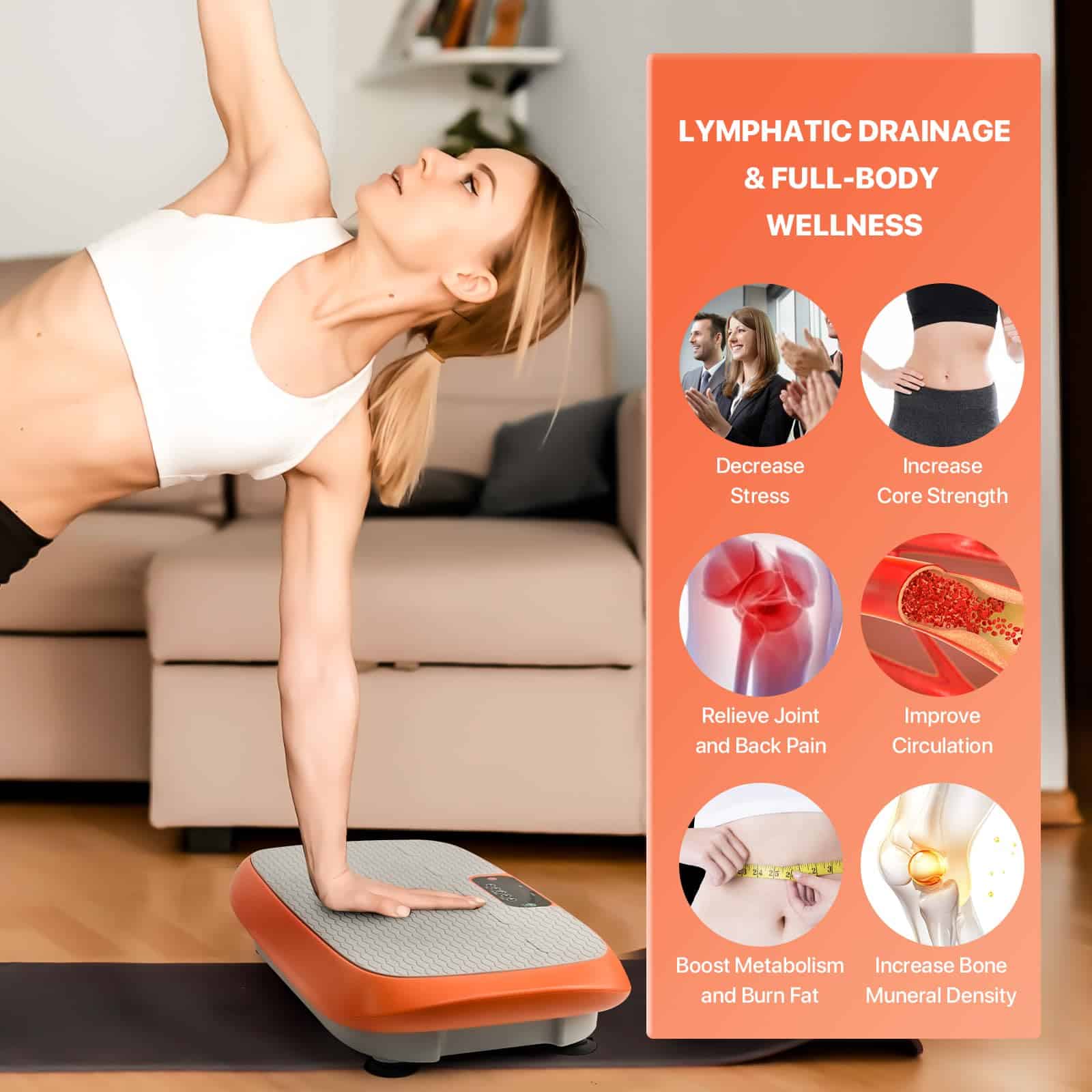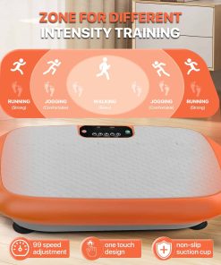 1. Máquina de Plataforma de Vibración de Grado Profesional Diseñada para soportar usuarios de hasta 264.5LB con construcción de acero reforzado, esta plataforma de vibración de entrenamiento garantiza una activación segura de todo el cuerpo para todos los niveles de fitness a través de la tecnología de movimiento de bajo impacto.