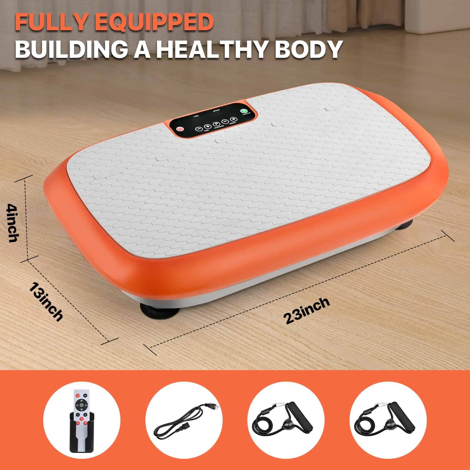 3. Plataforma de Fitness de Vibración Completa Incluye 2 bandas de resistencia premium para rutinas de estiramiento dinámico, ejercicios de núcleo y participación muscular dirigida durante las sesiones de terapia de vibración.