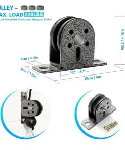 1 Marco Principal de Acero, 1 Polea Fija, 2 Cable Fijo, 1 Pasador de Carga, 3 Mosquetones, 6 Tornillos, 1 Destornillador, 1 Taladro Eléctrico de Martillo. Puedes elegir uno entre 1 Barra de Polea LAT, 1 Cuerda de Tríceps y 2 Bandas de Resistencia