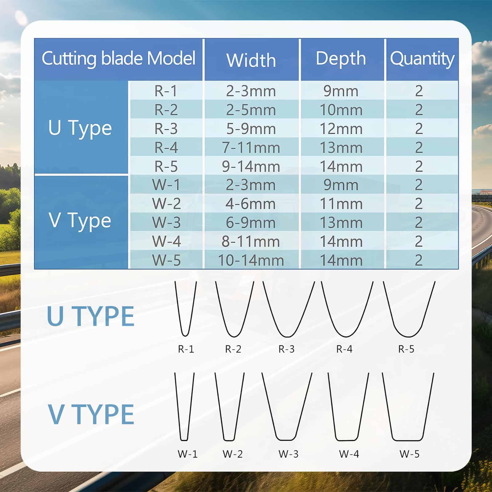 2 x Cuchillas en forma de V de 2,4,6,8,10 mm