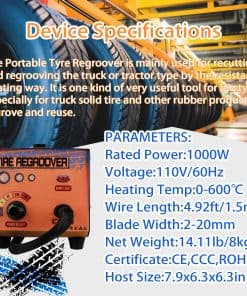 La Máquina de ranurar neumáticos portátil de 1000 W se utiliza principalmente para recortar y ranurar el tipo de camión o tractor mediante el calentamiento por resistencia. Es una herramienta muy útil para neumáticos grandes, especialmente para neumáticos sólidos de camiones y otros productos de goma para ranurar y reutilizar.