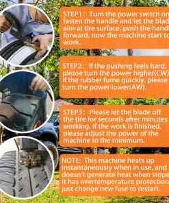 1. Encienda el interruptor de encendido, sujete el mango y haga que la cuchilla apunte a la superficie del neumático, empuje el mango hacia adelante, ahora la máquina comienza a trabajar.
