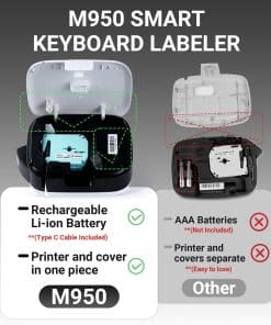 5. Amplia aplicación: La máquina de etiquetado M950 sin tinta con cinta utiliza la tecnología de impresión térmica, lo que elimina la necesidad de tinta o tóner, ahorrando costos a largo plazo. Ideal para organizar en oficinas, escuelas y hogares, la etiquetadora de teclado se puede utilizar para etiquetar una variedad de artículos, desde contenedores de almacenamiento hasta ropa, joyería, documentos de oficina y mucho más