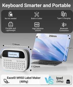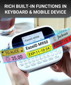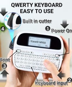 4. Teclado ergonómico QWERTY: El diseño de teclado más amplio de la etiquetadora con teclado EazeID M950 garantiza que tus pulgares puedan alcanzar fácilmente todas las teclas para una impresión sin esfuerzo. Disfruta de la comodidad que ofrece este teclado al imprimir tus etiquetas.