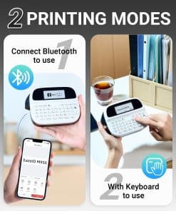 1. Dos modos de impresión: A diferencia de las etiquetadoras de teclado tradicionales, la impresora de etiquetas portátil EazeID M950 admite la impresión de teclado QWERTY y la conexión Bluetooth a la aplicación ‘Print Master’ para acceder gratuitamente a una amplia biblioteca de plantillas de etiquetas personalizables. La aplicación incluye más de 1000 patrones, 100+ marcos, 100+ fuentes, códigos de barras y códigos QR para personalizar tus etiquetas como desees.