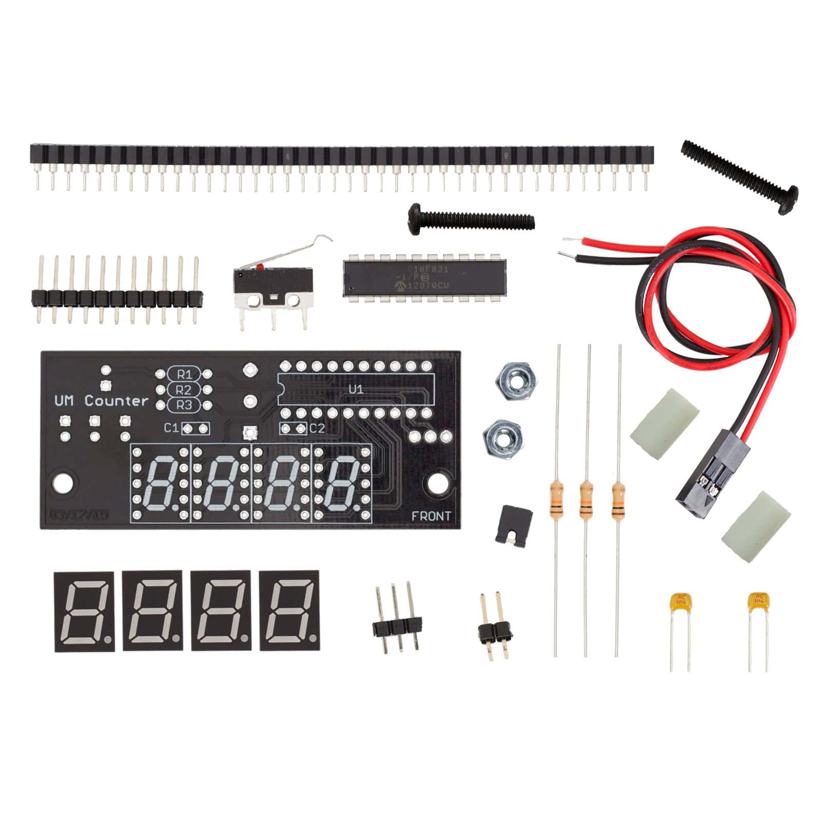 Solda la placa de control de la Máquina Inútil, luego procede a soldar el circuito del contador. ¡Cuando hayas terminado la construcción, tendrás una Máquina Inútil, que puede contar exactamente cuántas veces ha sido Inútil!