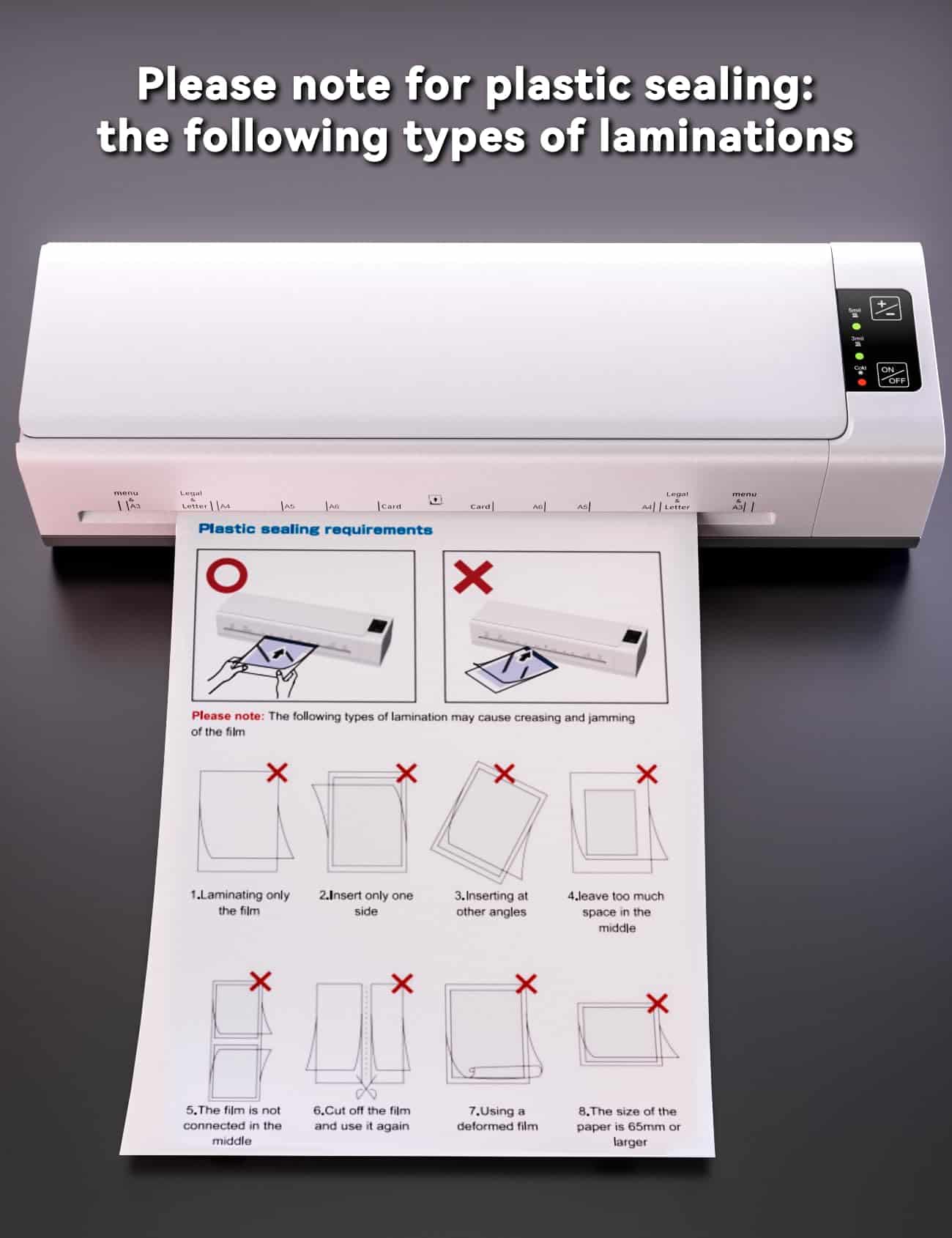 Nuestro laminador se calienta en solo 60 segundos, permitiéndote comenzar a laminar al instante. Con una velocidad de laminado de hasta 450 mm/min, es un 60% más eficiente que otros laminadores, asegurando que puedas terminar tus proyectos en poco tiempo. No más ralentizaciones debido a velocidades lentas. Lleva tus proyectos a nuevas alturas y revoluciona tu experiencia de laminado. La laminadora de 13 pulgadas portátil con hojas de laminado acomoda papel y fotos de varios tamaños, desde A3/A4/A5/A6. Es compatible con papel de laminado de 3 y 5 mil, incluyendo papel de tamaño legal, carta, tarjeta de visita y foto. Para obtener resultados óptimos, asegúrate de seleccionar bolsas de 3-5 mil (80-100 mic) de grosor. El sistema de doble rollo garantiza calor y presión precisos para un laminado impecable, previniendo arrugas, ampollas y rizos. Nuestro sistema de control de temperatura inteligente mejora la seguridad y la eficiencia, extendiendo la vida útil de la laminadora. Con una función de apagado automático, te mantendrás seguro y conservarás energía ya sea en la escuela, la oficina o en casa. La máquina laminadora con papel laminado destaca por su simplicidad sin configuraciones complejas. El panel de control intuitivo y la interfaz fácil de usar hacen que la operación sea pan comido. Gracias al corto tiempo de calentamiento y a las rápidas velocidades de laminado, puedes lograr resultados profesionales sin problemas. Di adiós a los atascos de papel, simplemente presiona el botón ABS para despejarlos y proteger tus documentos importantes. Estamos tan seguros de la calidad de nuestra máquina laminadora para el hogar que ofrecemos un servicio postventa de 2 años para tu tranquilidad. Si tienes alguna pregunta o necesitas ayuda, nuestro equipo de servicio al cliente profesional está aquí para ayudarte a resolver cualquier problema.