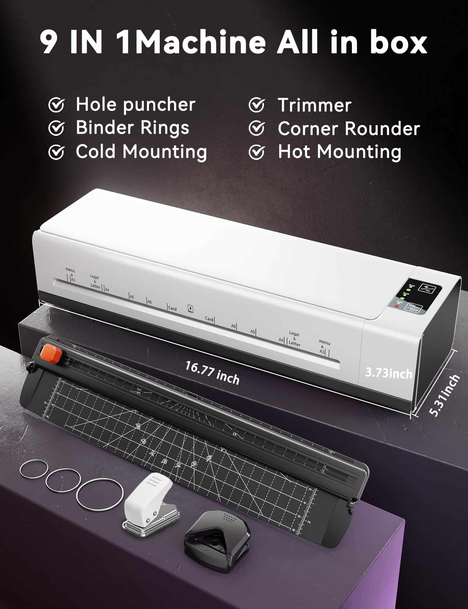 Máquina laminadora A3, 13 pulgadas, 9 en 1 con hojas de