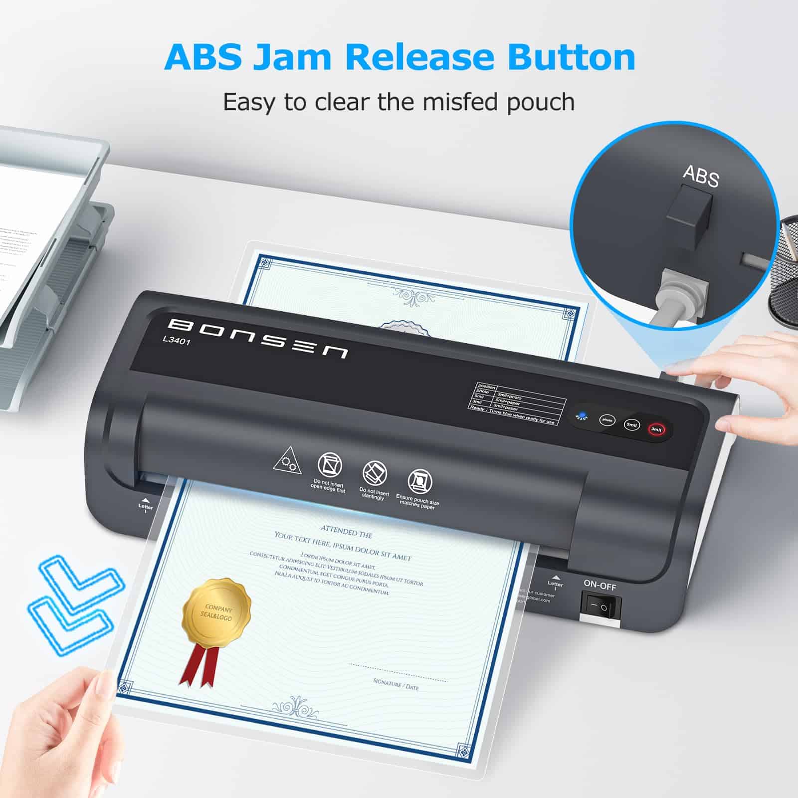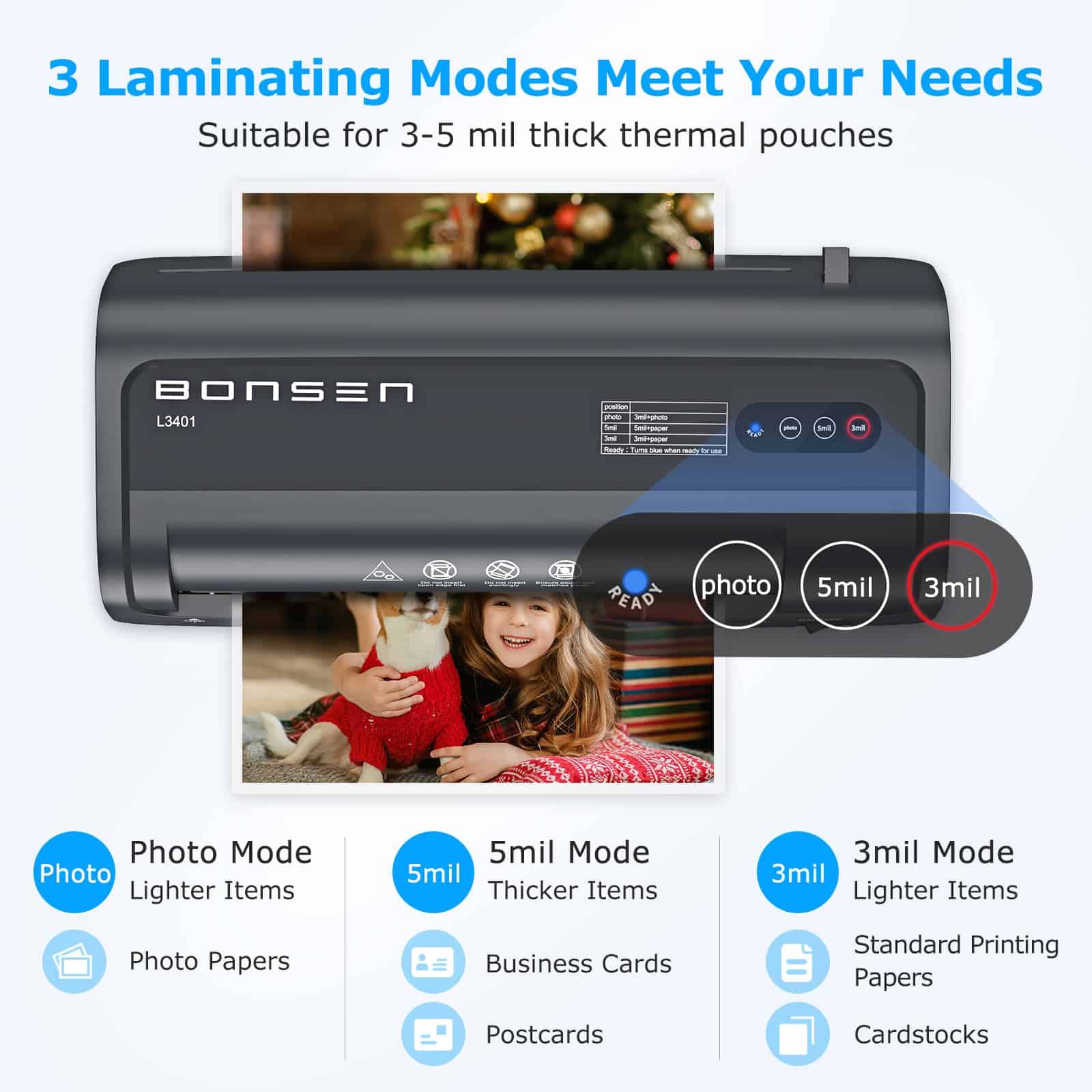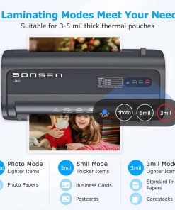 La máquina laminadora BONSEN A4, con su tecnología patentada Never Jam, garantiza un laminado sin atascos y de alta calidad. Sus 3 modos de laminado permiten adaptarse a una variedad de necesidades, desde fotos hasta documentos más gruesos o más ligeros. Además, el kit de inicio de laminado 4 en 1 incluido hace que sea fácil comenzar a preservar sus recuerdos. Con su entrada ancha de 9.33 pulgadas, la laminadora BONSEN es versátil y puede manejar una variedad de tamaños de papel y tipos de documentos. Con un tiempo de calentamiento rápido y un sistema de 2 rodillos profesionales, obtendrá resultados de laminado rápidos y suaves. La máquina laminadora BONSEN viene con el respaldo de un servicio al cliente profesional en todo momento, asegurando que su experiencia de laminado sea perfecta.