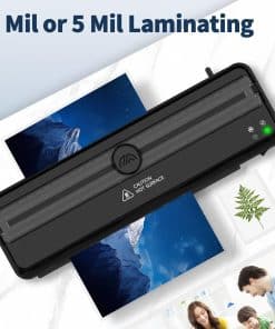 1. Característica: Obtendrás una laminadora y 20 hojas. La máquina es compatible con cualquier bolsa de laminado de 3 mil o 5 mil (mil se refiere al grosor del film de laminado).