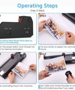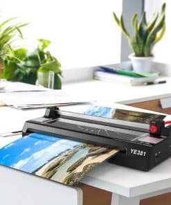 La Máquina Laminadora YE381, conveniente para usted y su familia, también puede ser un regalo especial para sus amigos y familiares. Especificaciones Técnicas Ancho Máximo: 330mm / 13 pulgadas Tiempo de Preparación: 3-5 minutos Grosor de la Bolsa: 160(2 x 80)-250(2 x 125) micras 0.5mm Velocidad de Laminación: 250mm/min Consumo de Energía: 365W Sistema de Calefacción: sistema de 2 rodillos (compatible con trabajos de laminado tanto térmicos como en frío) Prevención de Atascos de Papel: botón de liberación de atascos Interruptores: ENCENDIDO/APAGADO, FRÍO/CALOR Dimensiones: 422 x 160 x 99 mm Peso del Artículo: 5.16 lb Dimensiones del Producto: 16.54 pulgadas x 5.71 pulgadas x 3.15 pulgadas Paquete Incluido: 1 Máquina laminadora A3 negra, 1 redondeador de esquinas, 50 bolsas (25 para A4, 25 para A6) Consejos: Se recomienda usar láminas de laminado de 3 mil para esta máquina. Consejos para la operación (Importante): Coloque la hoja de laminado en la máquina a lo largo del extremo de la unión entre las dos películas de plástico para evitar problemas de atasco. 1. Se recomienda leer el manual de usuario completo antes del primer uso de este producto. 2. Para proteger su laminadora, no la use durante demasiado tiempo. 3. No coloque demasiado papel para evitar atascos. El grosor total de papel y bolsas de laminado no debe superar los 0.5 mm, si excede los 0.5 mm, las láminas se atascarán. (Consejo útil: el grosor de la lámina de laminado de ABOX es de 150(2×80) – 250(2×125) micras 0.5mm.)