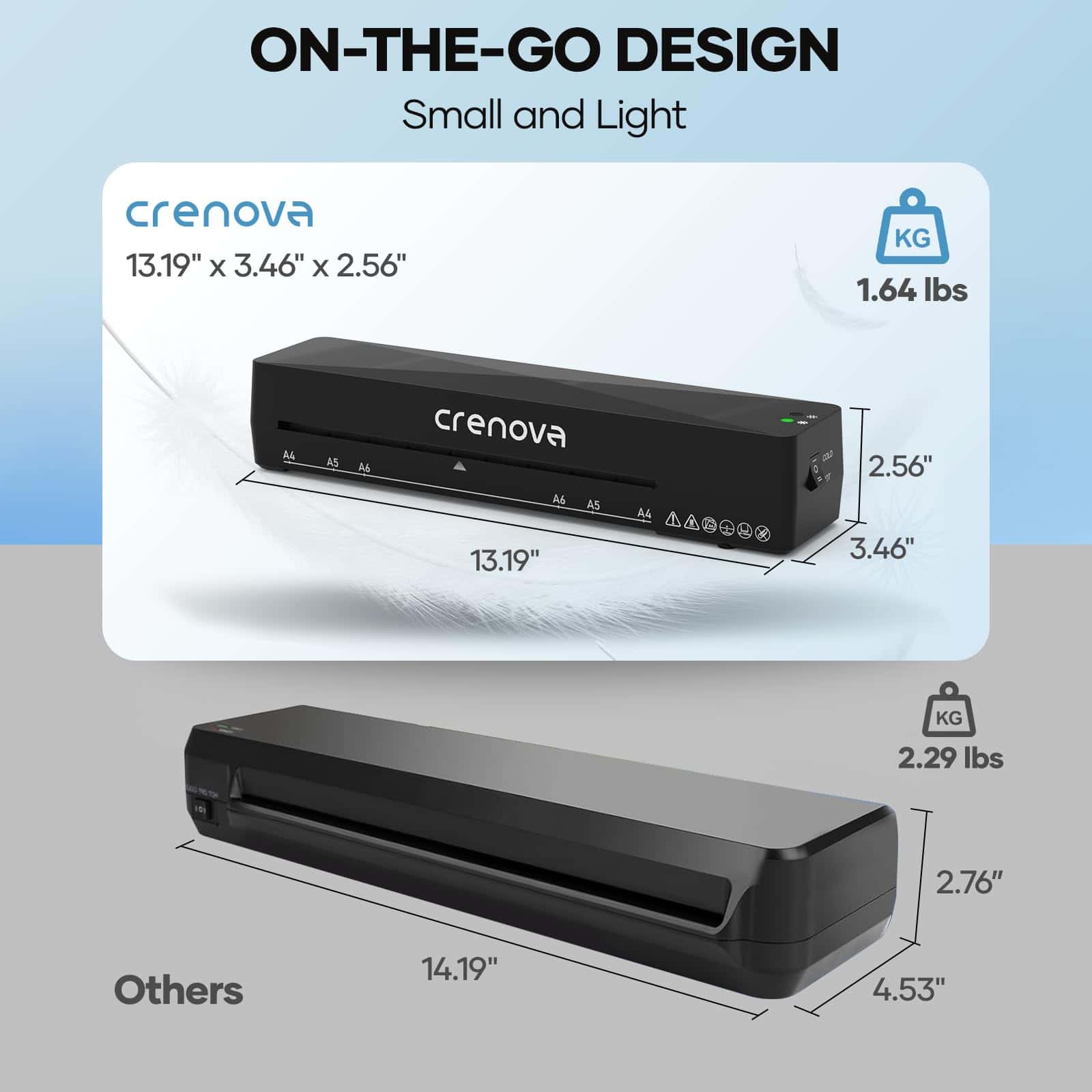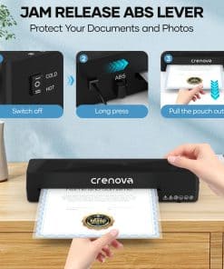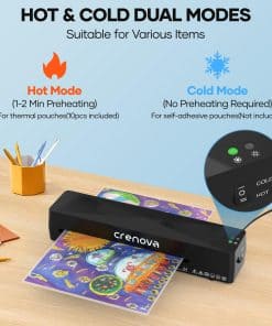 5. Operación de un botón, amplios usos: Mueve el interruptor a CALIENTE o FRÍO para que funcione automáticamente. La plastificadora Crenova ofrece una laminación fácil, rápida, sin burbujas ni arrugas. Es ideal para tareas domésticas, de oficina y escolares, como pintura, menú, carta, certificado, tarjeta postal, foto, carnet de identidad, etiqueta.