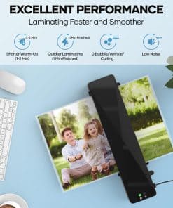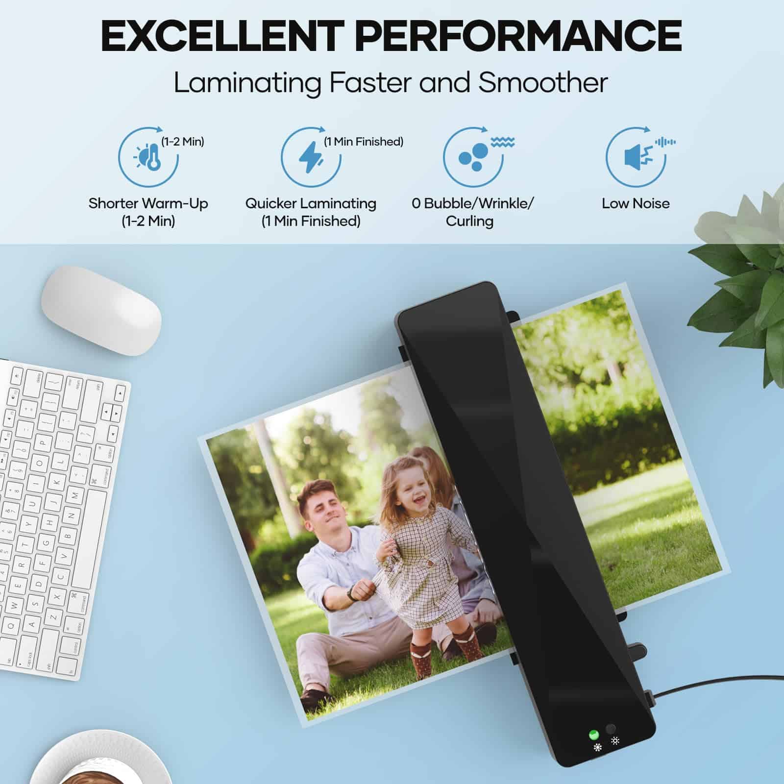 3. Ultra portabilidad: Esta plastificadora cuenta con una entrada de 230 mm (9 pulgadas, tamaño A4), perfecta para adaptarse a cualquier escritorio. Este gran set incluye 1 plastificadora y 1 manual de usuario para ayudarte a comenzar rápidamente.