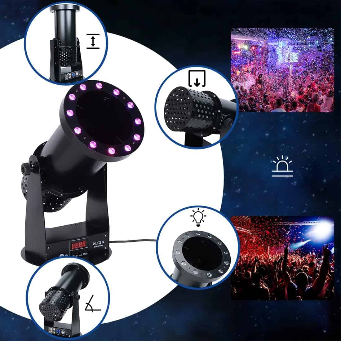 Máquina Profesional Lanzadora de Confeti LED, Máquina
