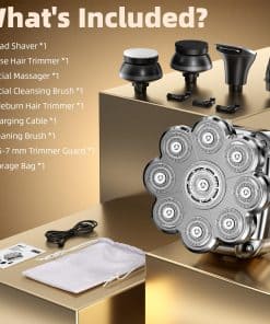 Maquinilla de afeitar UltraCaput 9D para hombres calvos, 5 en 1 con cabezal desmontable y pantalla LED, maquinilla de afeitar eléctrica recargable impermeable IPX7 para hombres juego de cuidado personal para el hogar y viajes. Di adiós a la limpieza tediosa de las maquinillas de afeitar tradicionales. Nuestra maquinilla de afeitar para cabeza adopta un innovador diseño desmontable y magnético, haciendo que la limpieza sea más fácil que nunca. Después de cada afeitado, puedes quitar fácilmente toda la cuchilla con solo un ligero desmontaje, y enjuagar rápidamente para eliminar todo el vello residual, manteniendo la cuchilla en las mejores condiciones de funcionamiento. Esta maquinilla de afeitar para hombres calvos está equipada con 9 cabezales flotantes y ha sido diseñada ergonómicamente para adaptarse perfectamente a las curvas de tu cuero cabelludo, cuello y rostro, brindándote una experiencia de afeitado precisa y suave. Combinado con un potente motor de alta velocidad, esta maquinilla de afeitar eléctrica para hombres puede eliminar rápidamente y eficientemente más vello, reduciendo significativamente el tiempo de afeitado, permitiéndote lidiar fácilmente con los cuidados diarios en tu ajetreada vida. Esta maquinilla de afeitar para cabeza calva combina doble cuchilla y doble red protectora para capturar de manera precisa y rápida tu vello largo y corto sin jalar o pellizcar el pelo. El proceso de afeitado es preciso, afilado y seguro. La doble red protectora puede reducir efectivamente la irritación de la piel, proteger tu piel de daños y proporcionarte una experiencia de afeitado suave y sin preocupaciones. El set de afeitado multifuncional para hombres incluye cinco accesorios reemplazables: cabezal de afeitado de cabeza/rostro, recortador de cabello de patillas, recortador de vello nasal, masajeador facial y cepillo de limpieza facial, que son suficientes para satisfacer tus diversas necesidades de afeitado. Se incluye una bolsa de almacenamiento portátil para tus viajes y almacenamiento. Este exquisito set de cuidado personal para afeitar la cabeza es muy adecuado para tu esposo, pareja, padre, amigo, etc. Ya sea afeitado en seco o húmedo, el diseño resistente al agua IPX7 de esta maquinilla eléctrica puede satisfacer tus necesidades. Puedes afeitarte fácilmente en la ducha y disfrutar de una experiencia de afeitado refrescante, o arreglarte rápidamente en un ambiente seco. Haz del afeitado un placer sin preocuparte por las manchas de agua o problemas de limpieza, para que puedas mantener tu mejor imagen en cualquier momento y en cualquier lugar. Esta maquinilla eléctrica para hombres está equipada con una pantalla LED inteligente, que muestra el tiempo de uso restante, el recordatorio de batería baja y el recordatorio de limpieza en tiempo real, para que puedas mantener siempre el control del estado de la maquinilla de afeitar. Solo toma 1.5 horas cargar rápidamente y se puede usar de forma continua durante hasta 90 minutos. El método de carga es flexible y diverso, compatible con laptops, autos y fuentes de energía móvil, etc., para tu uso diario.