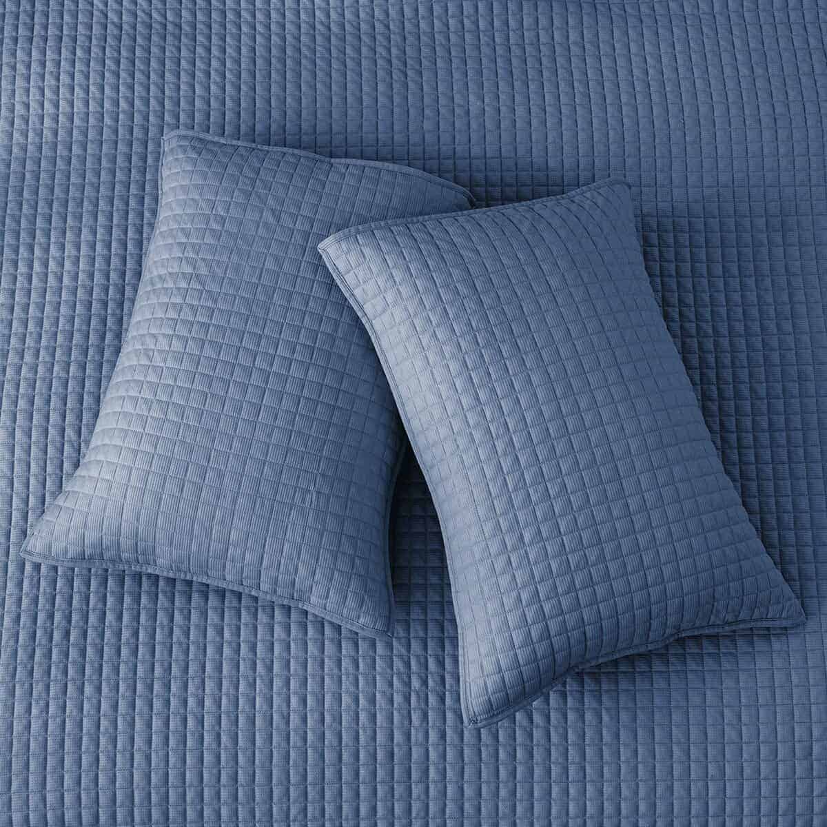 Maravilloso Juego de Colcha de Gofre Azul Denim con Fundas
