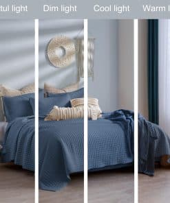 1. Maravilloso Juego de Edredón de Gofre Nuestro juego de edredón está hecho de poliéster de gran calidad, el reverso está diseñado con tela lavada y cepillada, que es amigable con la piel y suave, brindando un toque más cómodo, garantizando un refugio acogedor durante todo el año. Brindando un rendimiento de suavidad superior y un confort lujoso. 2. Juego de Edredón Cuadrado Clásico Diseño de patrón cuadrado clásico, adecuado para varios estilos para combinar. La colección de Gofre es un clásico atemporal, un clásico instantáneo. Es enormemente versátil. Úsalo como tu principal cubrecamas o como una pieza de capas. Querrás llevarlo contigo dondequiera que te acurrucas en un sofá, frente a una chimenea o con esa persona especial. 3. 3 Piezas de Cubrecama de Cuadros para Todas las Estaciones Nuestro conjunto de ropa de cama de gofre podría usarse como edredón de aire acondicionado en verano primavera. En otoño invierno, podrías agregar una manta o edredón debajo. Dependiendo de la temporada, puedes usarlo para todas las estaciones para brindar una sensación de comodidad y suavidad. 4. Medidas y Tamaño El Juego de Ropa de Cama incluye 1 edredón con 2 fundas de almohada; Tamaño Full/Queen: 1 edredón de 94″x94″ con 2 fundas de 20″x26″; Tamaño King: 1 edredón de 104″x94″ con 2 fundas de 20″x36″. 5. Certificación OEKO-TEX y Lavable a Máquina Fabricado en una fábrica con certificación OEKO-TEX Standard 100, un sistema de certificación independiente que garantiza que los textiles cumplan con altos estándares de seguridad y ambientales. Lavable a máquina, lavar a máquina en temperatura ambiente, secar al sol o en secadora. No blanquear ni planchar. El juego de ropa de cama se vuelve más suave con cada lavado y es resistente a la formación de bolitas, al encogimiento y a la decoloración.
