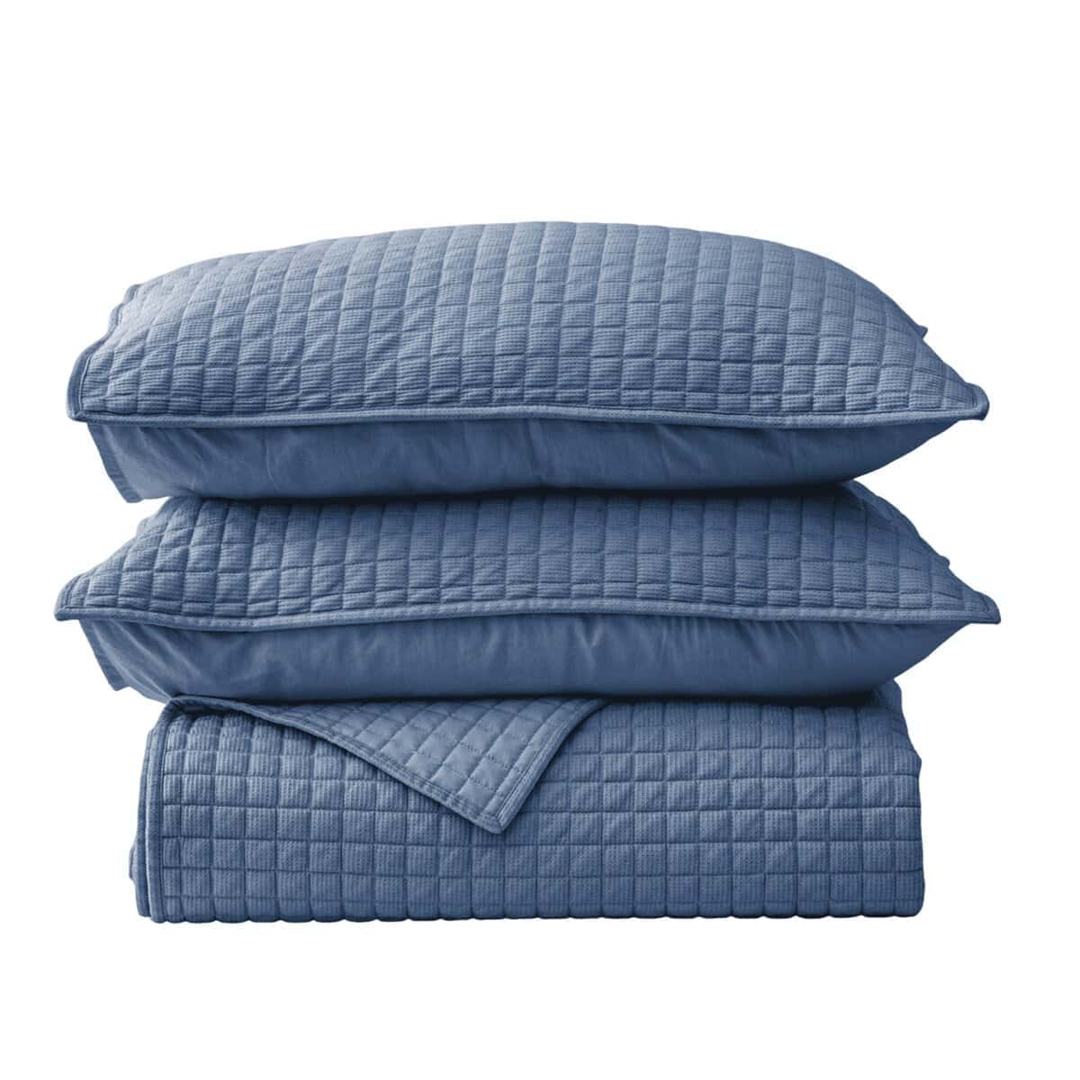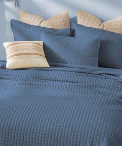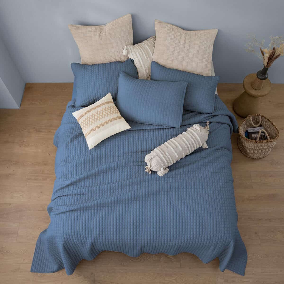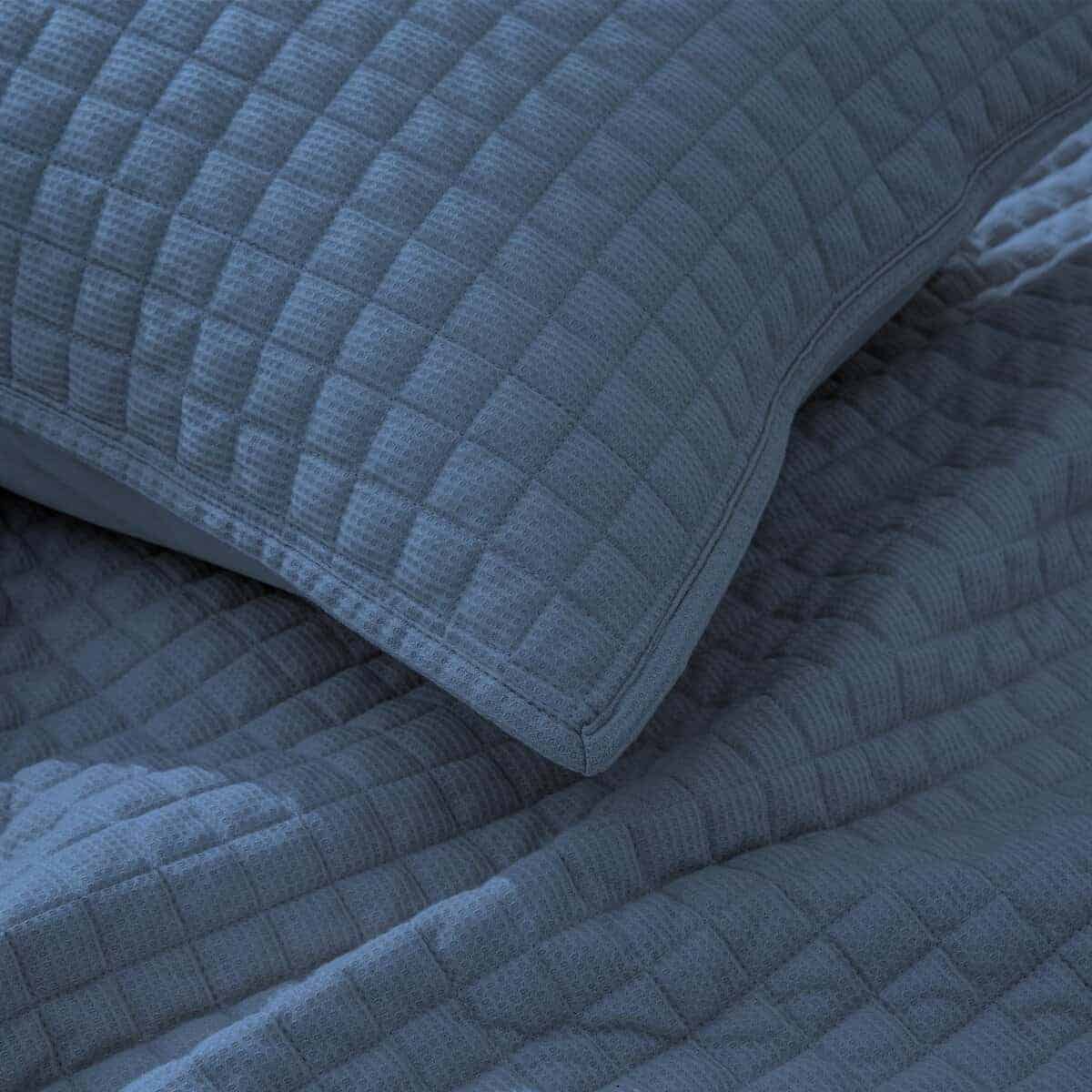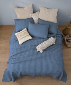 Maravilloso Juego de Edredón de Gofre Azul Denim con Fundas